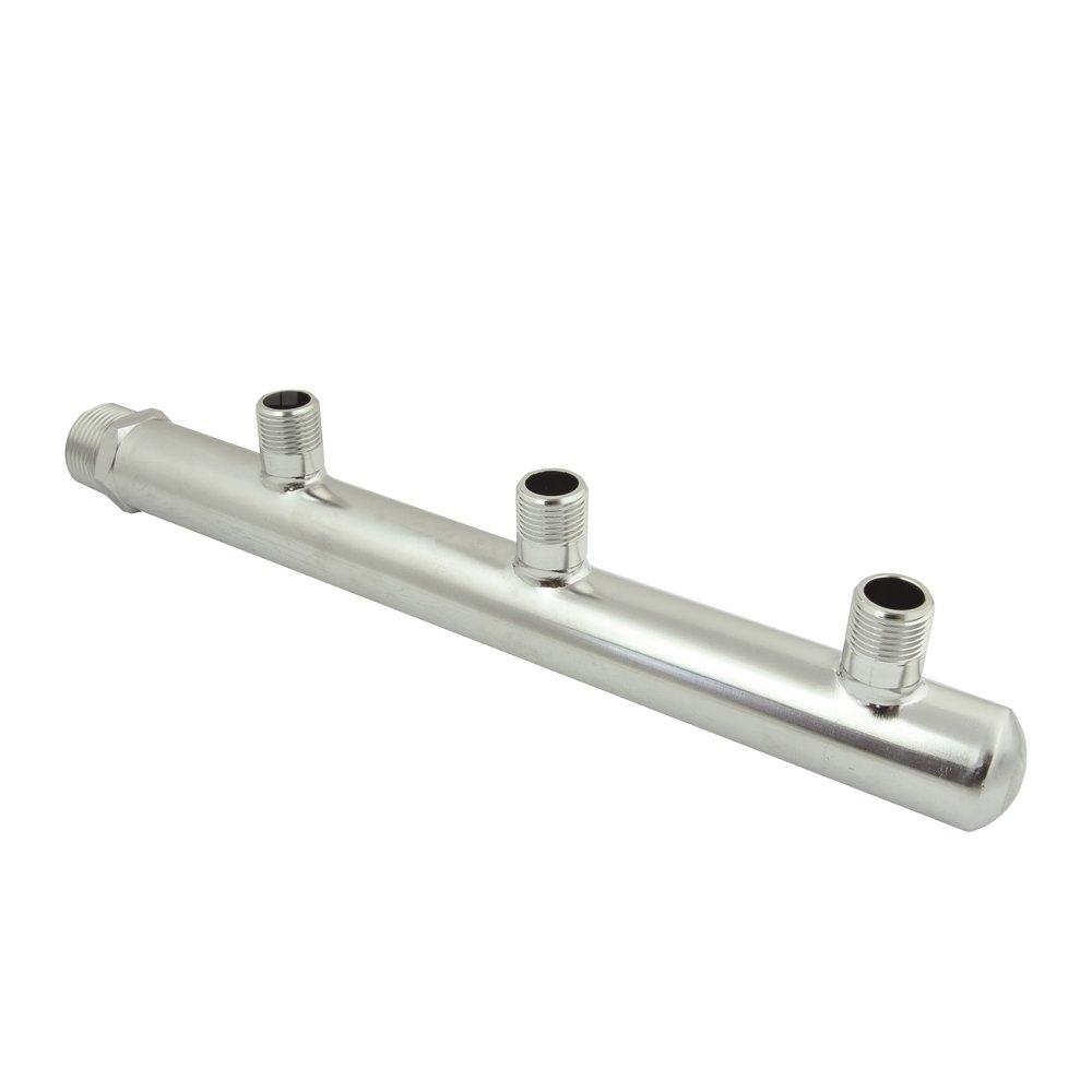 PHA-123 3-ob. rozdzielacz ze stali nierdzew. przyłączeniowy wodomierza/ciepłomierza nyplowy 1"GZx1/2"GZ (rozstaw100mm)PN10