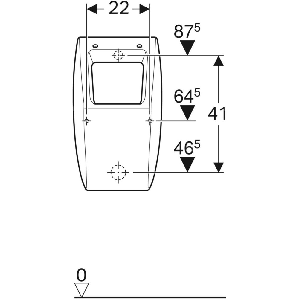 Pisuar Geberit Pareo do pokrywy, dopływ z tyłu, odpływ do tyłu: T=26.5cm, Odpływ=Do tyłu, Dopływ=Z tyłu, Biały