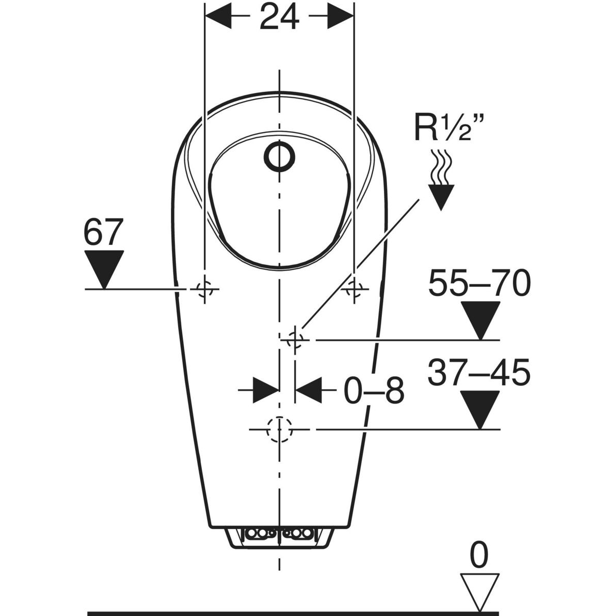 Pisuar Geberit Selva z wbudowanym systemem spłukiwania pisuarów, zasilanie generatorowe: T=37cm, Odpływ=Do tyłu, Dopływ=Z tyłu, Biały