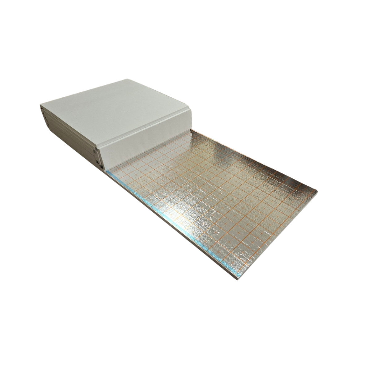 Płyty izolacyjne wykonane są z pasków styropianowych EPS 100 o grubości 25 mm, oklejonych jednostronnie tkaniną polipropylenową metalizowaną.