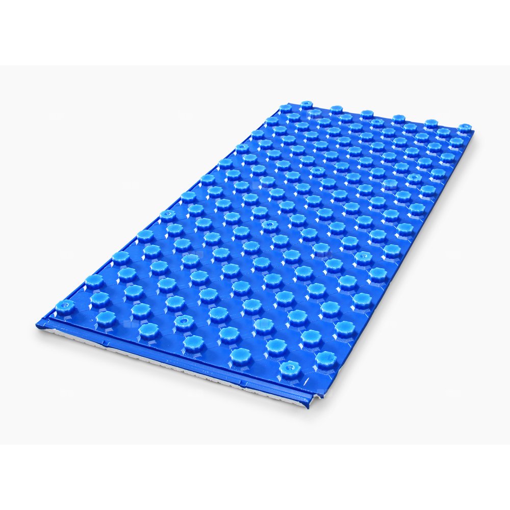 Płyta do szybkiego montażu rur ogrzewania podłogowego bez użycia spinek mocujących przy zachowaniu dokładnego rozstawu rur.