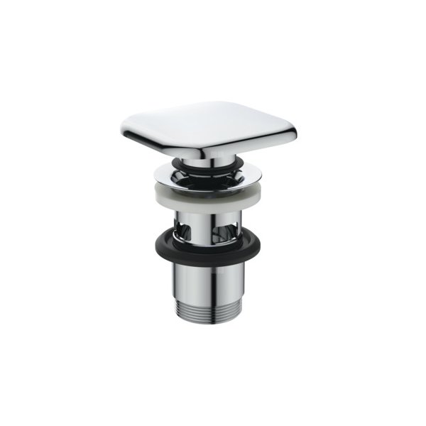 Korek typu Click-clack z metalową pokrywą. Przeznaczony jedynie do umywalek z otworem przelewowym.