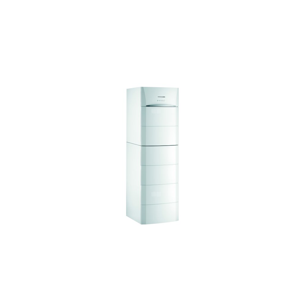 Pompa ciepła wraz z podgrzewaczem c.w.u., emaliowanym, ładowanym warstwowo wyposażonym w wymiennik płytowy połączony z pompą ładującą. Podgrzewacz umieszczony pod pompą ciepła dla utworzenia „kolumny” o jednolitym wzornictwie. Ochrona przez „Titan Active System” (anoda niezużywająca się). Zawór spustowy. Przewody połączeniowe pompa ciepła/podgrzewacz i czujnik c.w.u. objęte dostawą, regulowane nóżki. Pompa ciepła objęta 5-letnią gwarancją