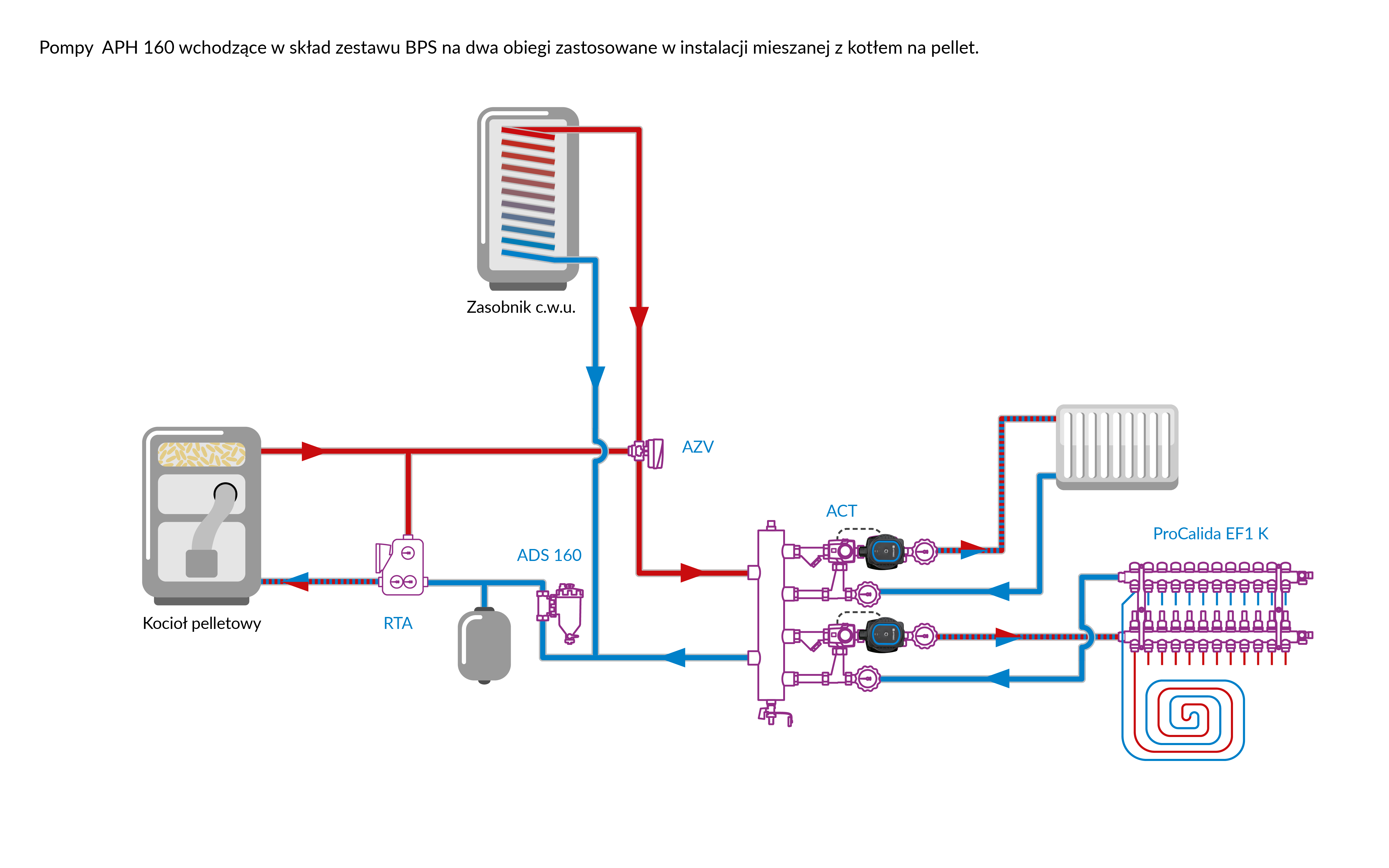 Przetłacza czynnik grzewczy ze źródła do emiterów ciepła.