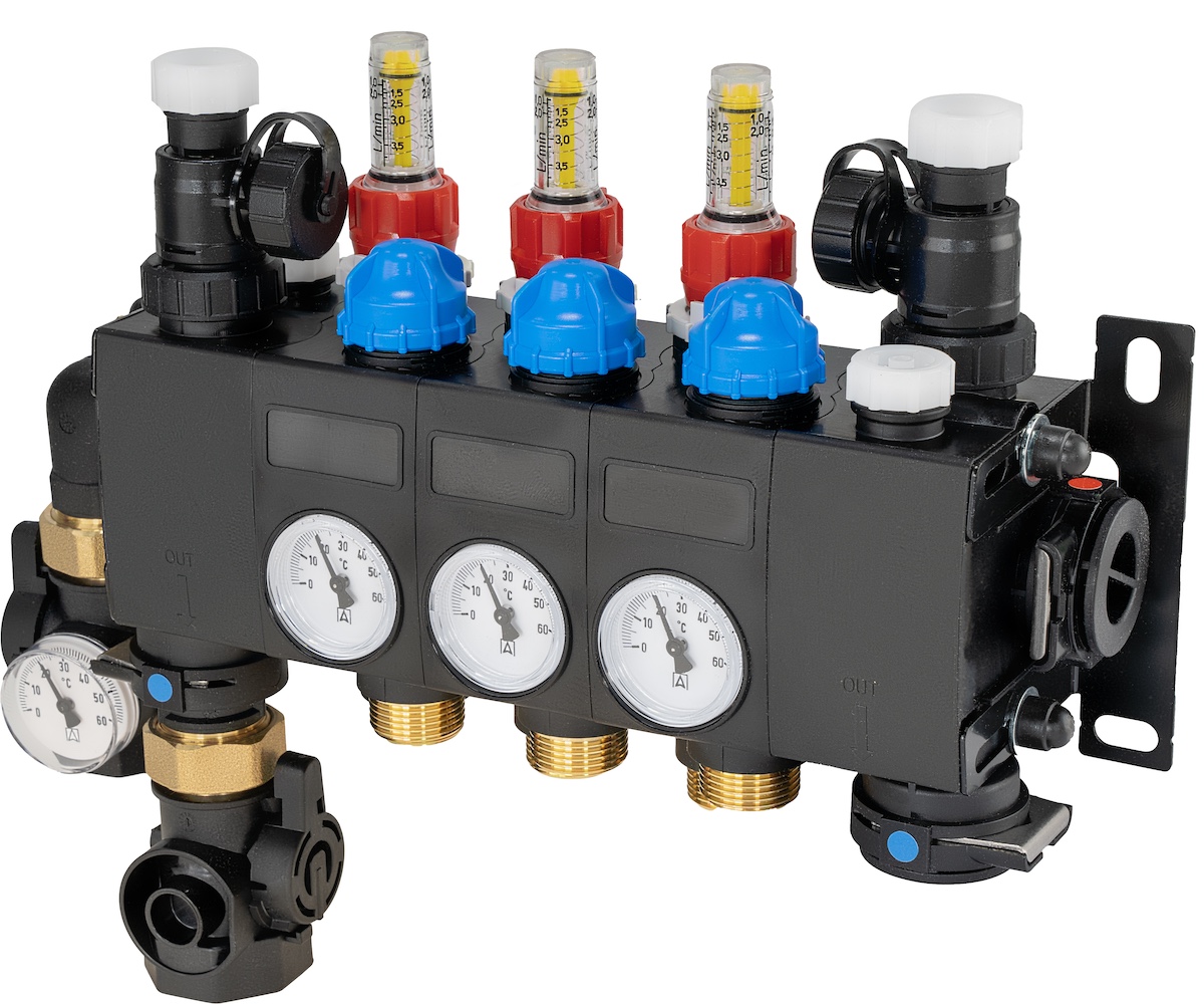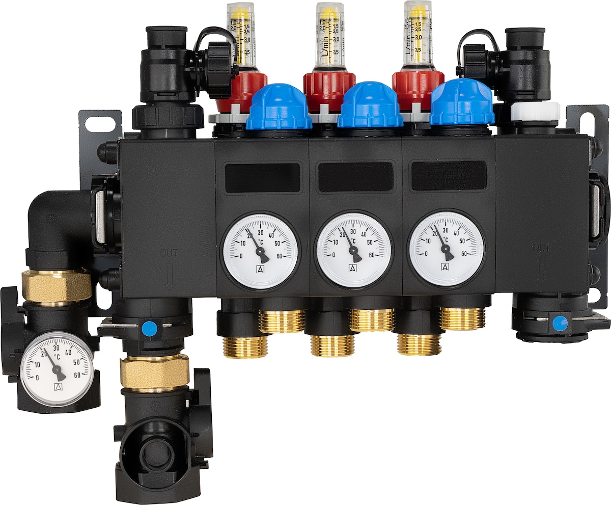 Rozprowadza ciepło / chłód ze źródła na poszczególne pętle instalacji płaszczyznowej.