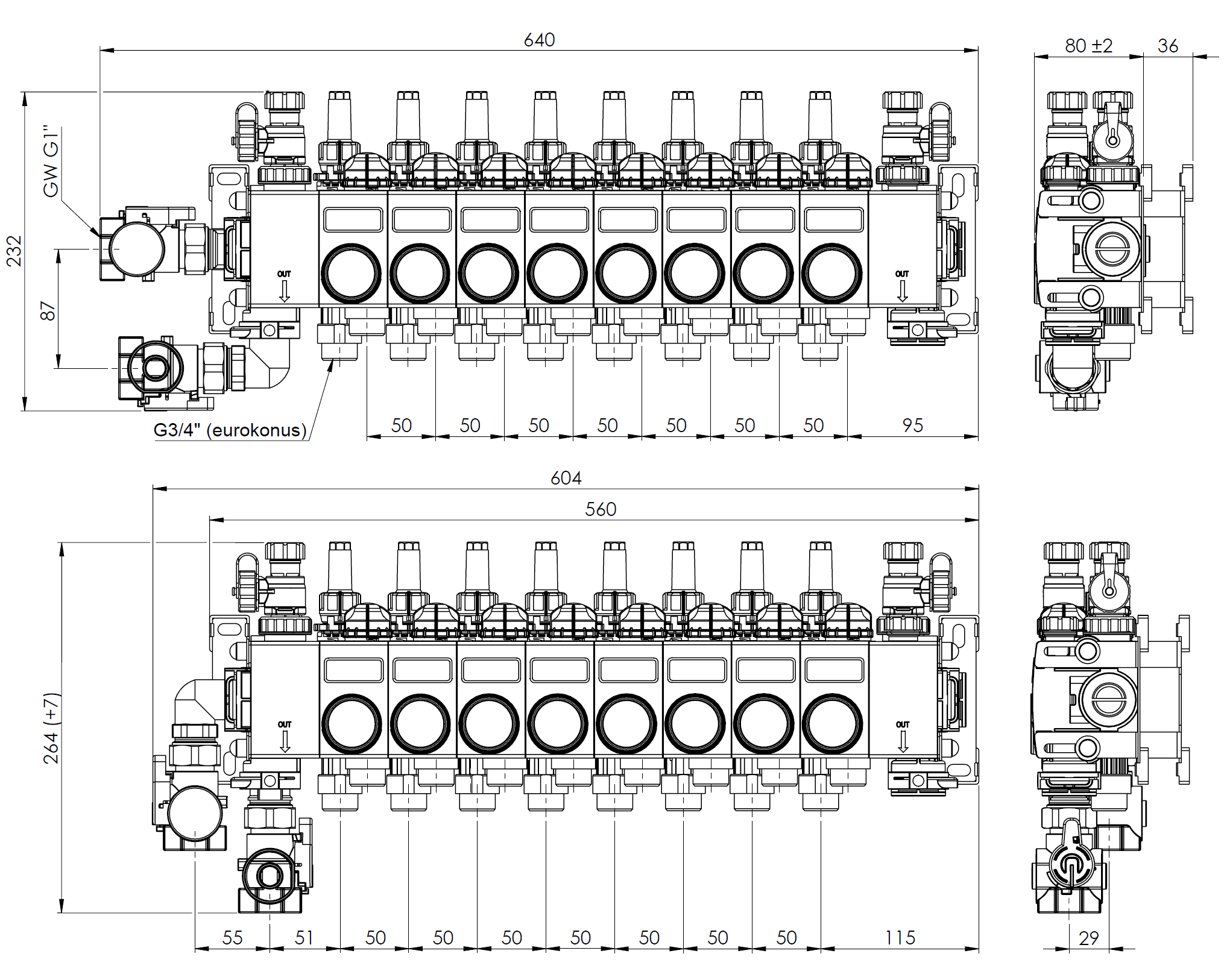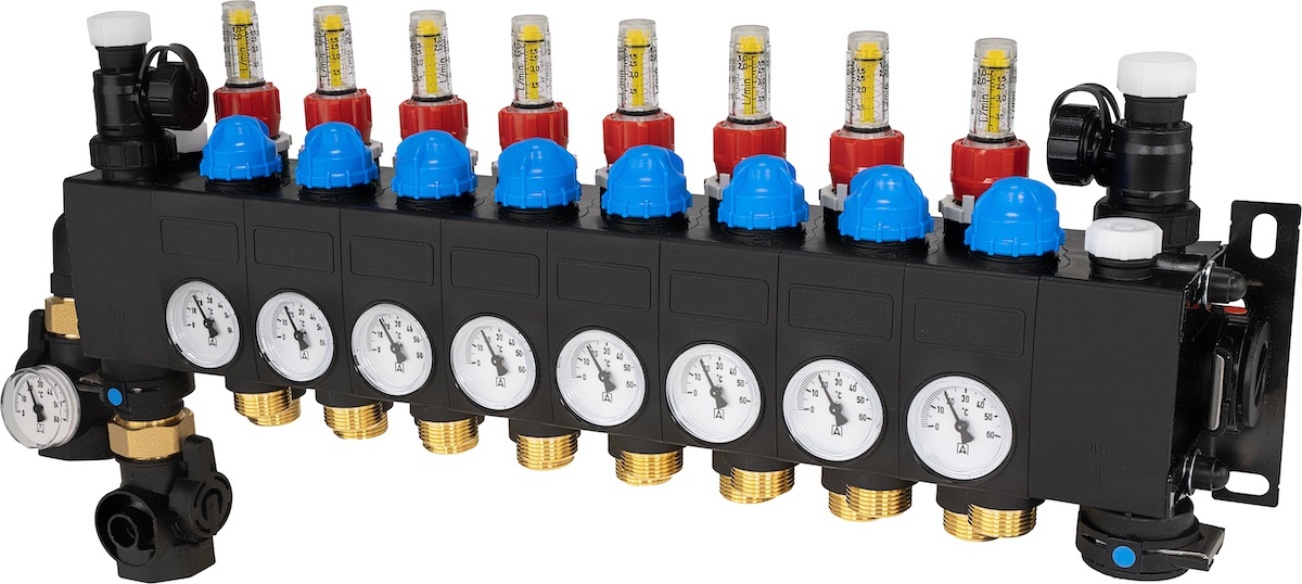 ProCalida CC 1 na 8 obiegów grzewczych, rotametry 0,75÷3,75 l/min