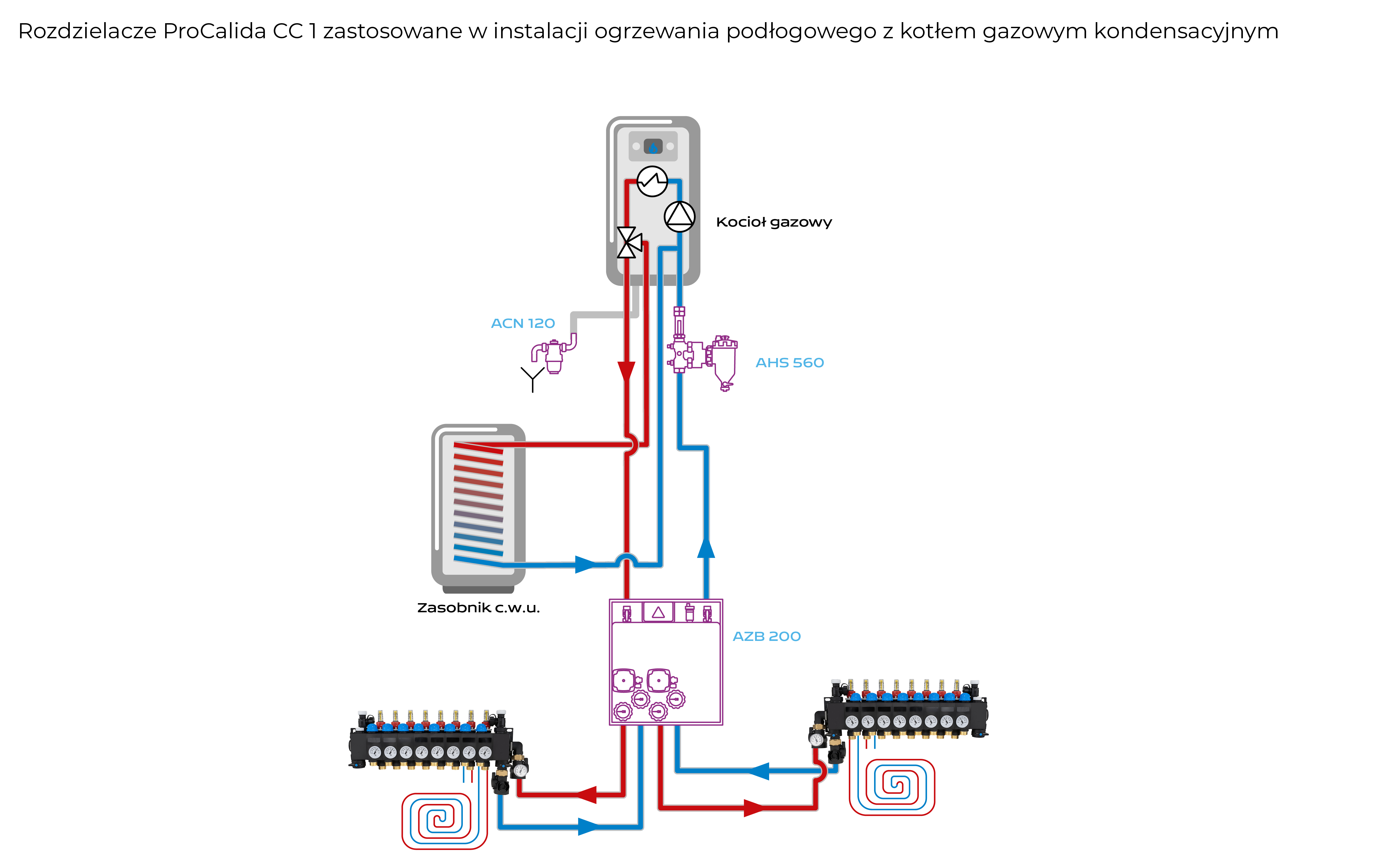 Rozprowadza ciepło / chłód ze źródła na poszczególne pętle instalacji płaszczyznowej.