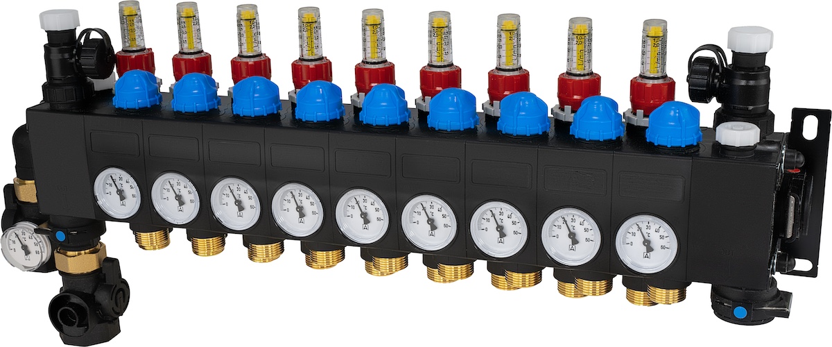 ProCalida CC 1 na 9 obiegów grzewczych, rotametry 0,75÷3,75 l/min