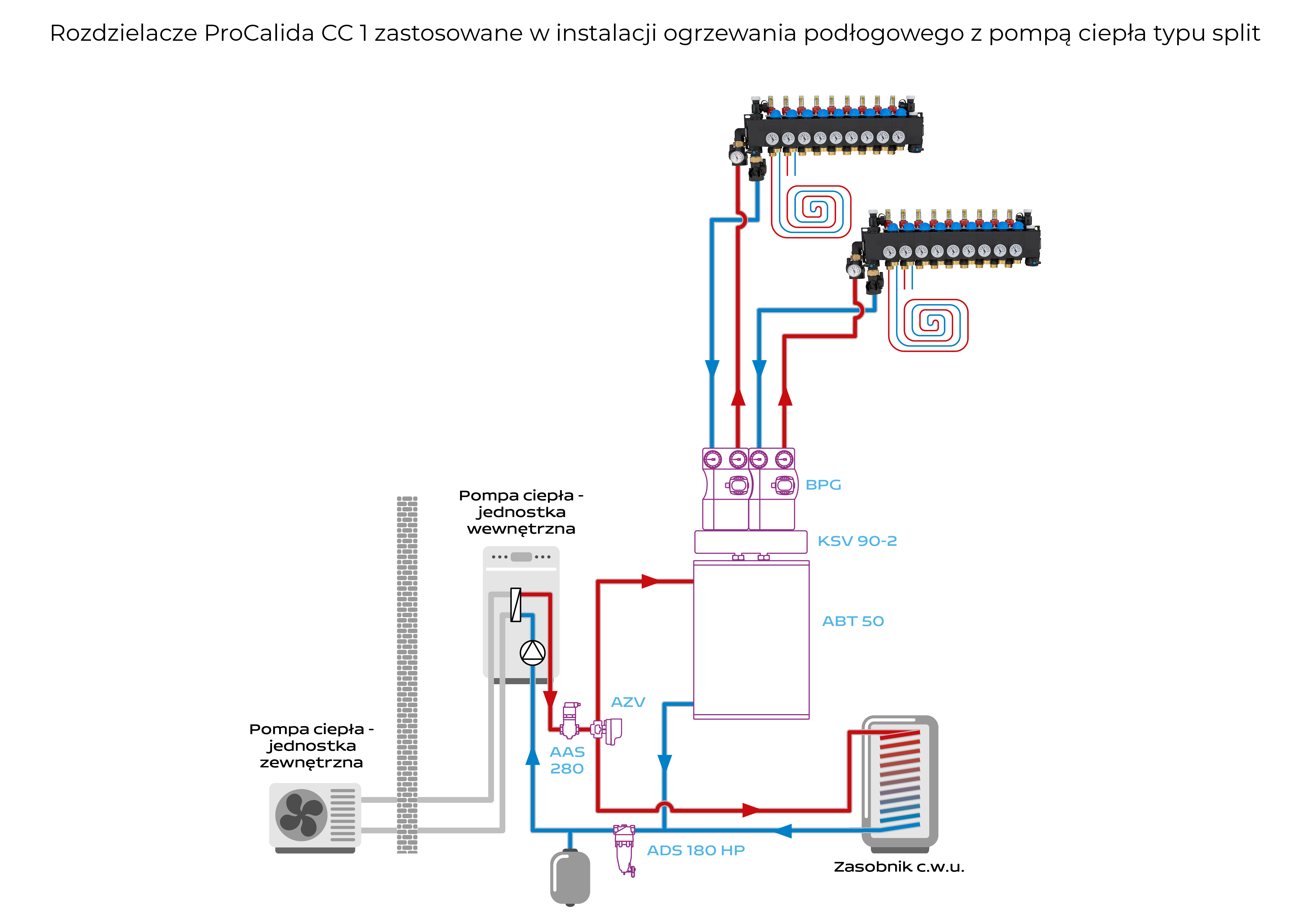 Rozprowadza ciepło / chłód ze źródła na poszczególne pętle instalacji płaszczyznowej.