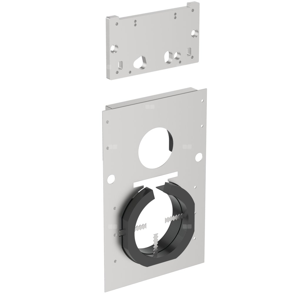 Kompatybilny z ProSys 80, 120, 150. Zapobiega rozprzestrzenianiu się ognia i dymu pomiędzy ścianami w budynku przez około 120 minut. Zastosowanie do mechanicznych płyt sterujących OLEAS™ - M1 (R0115), M2( R0121), M3 (R0123), M4 (R0126). Charakterystyka techniczna: - "Kołnierze" wykonane są ze stali i malowane proszkowo przy pomocy poliestru, wyposażone w specjalne wkładki pęczniejące, które w przypadku pożaru rozszerzają się i ściskają rurę, zapobiegając w ten sposób przenikaniu płomieni, gazów spalinowych i oparów oraz działając jako izolacja termiczna. Zawierają 27% grafitu mineralnego i posiadają klasę B2 wg DIN 4102;. Produkt zgodny z normą EN 13501-2:2'16. Akcesoria w zestawie: 2 uchwyty mocujące do montażu spłuczki: - 1 do stosowania ze stelażami WC ProSys™ 120 & 80. 1 do stosowania ze stelażem ProSys™ 150 WC. 1 Zestaw do rur spłukujących;. 4 standardowe śruby mocujące M6xM45;. 4 standardowe podkładki M6.
