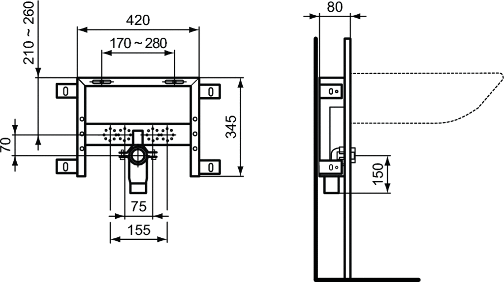 Odpowiednie do łączenia z umywalkami mocowanymi do ściany z jednootworowymi bateriami, do osadzania w ścianach murowanych. Ocynkowana rama o grubości 80 mm, z regulowanymi uchwytami montażowymi. Akcesoria w zestawie: Osprzęt do mocowania umywalki, materiały mocujące ramę, kolanko odpływowe. Sprawdź więcej szczegółów w cenniku i katalogu ProSys™.