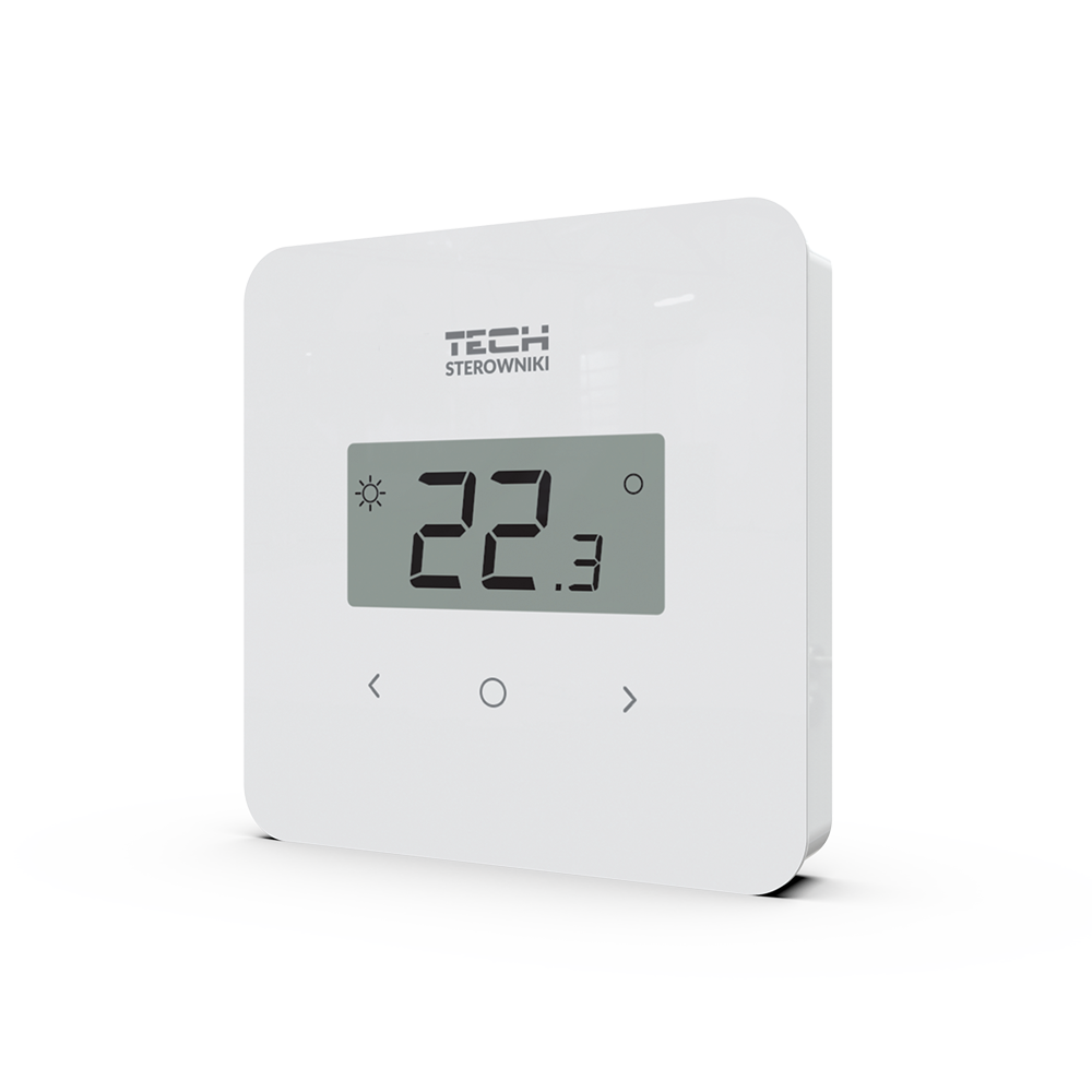 Przewodowy regulator pokojowy dwustanowy - duże cyfry (panel przedni ze szkła) biały, model T-2.1