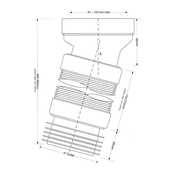 Przyłącze kanalizacyjne harmonijkowe L-260>365mm,wejście 90-110mm,wyjście 110mm, kąt 14
