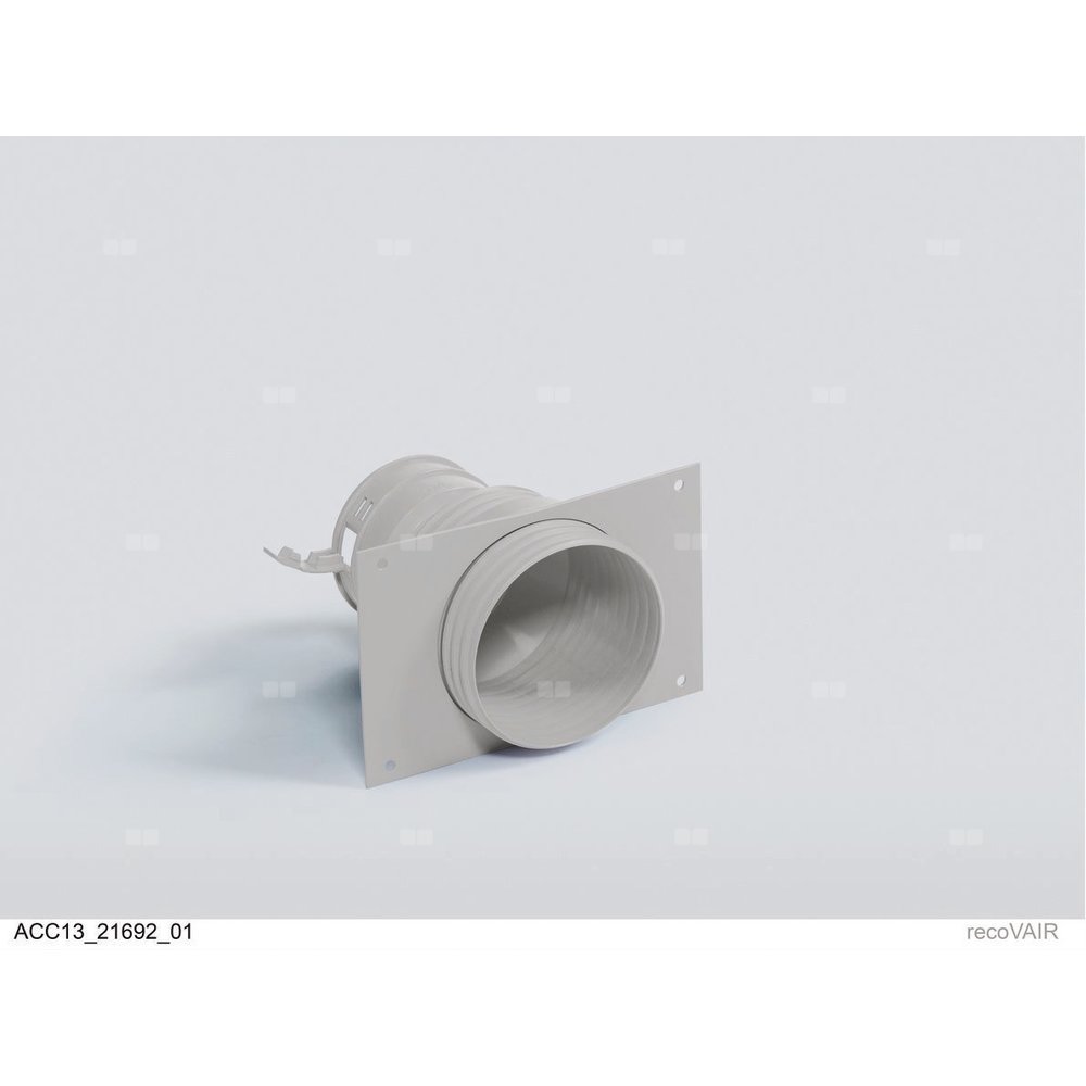 Przyłącze nawiewnika proste, Ø125 mm, na giętki przewód powietrzny Ø92/75mm z płytą montażową, uszczelki i kołpaki zamykające do zabezpieczenia przed pyłem w trakcie montażu