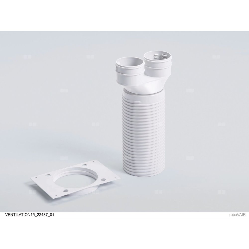 Przyłącze zaworu, proste, Ø125 mm, na dwa giętkie przewody powietrzne Ø75/62 mm z płytą montażową, uszczelki i kołpaki zamykające do zabezpieczenia przed pyłem w trakcie montażu