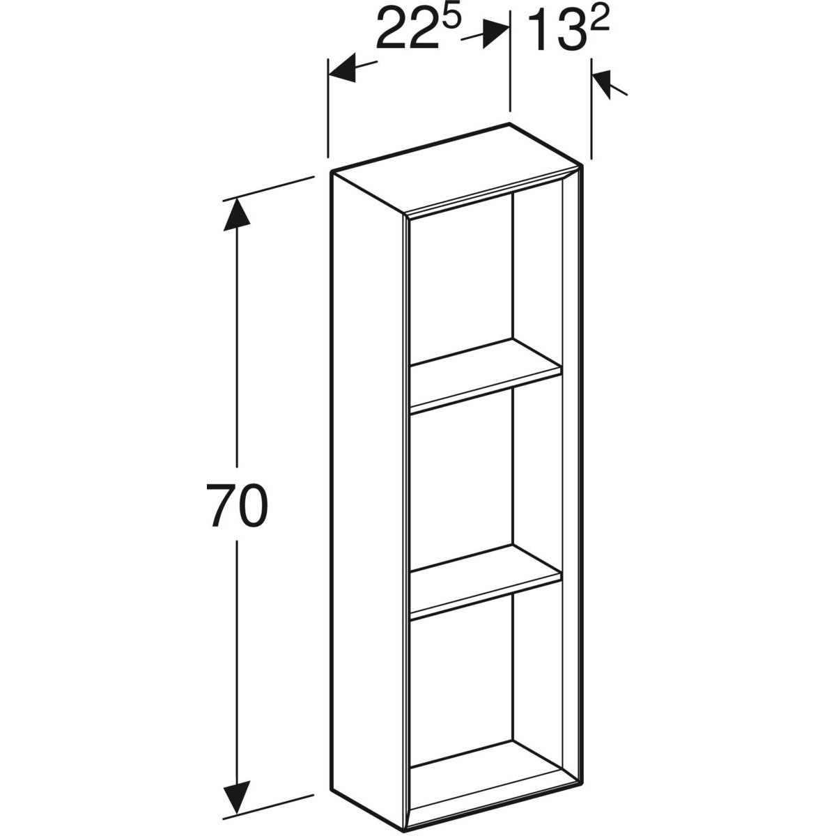 Certyfikat FSC™ C134279 Wiszący Ukryte mocowania Z dwoma półkami regulowanymi Wilgocioodporny Dostarczany wstępnie zmontowany Do serii Geberit ONE, Acanto, iCon i VariForm Materiał: Sprasowana trójwarstwowa płyta wiórowa Kolor główny: Orzech włoski hickory Powierzchnia: Melamina, struktura drewna Zawartość: Górna szafka Elementy mocujące