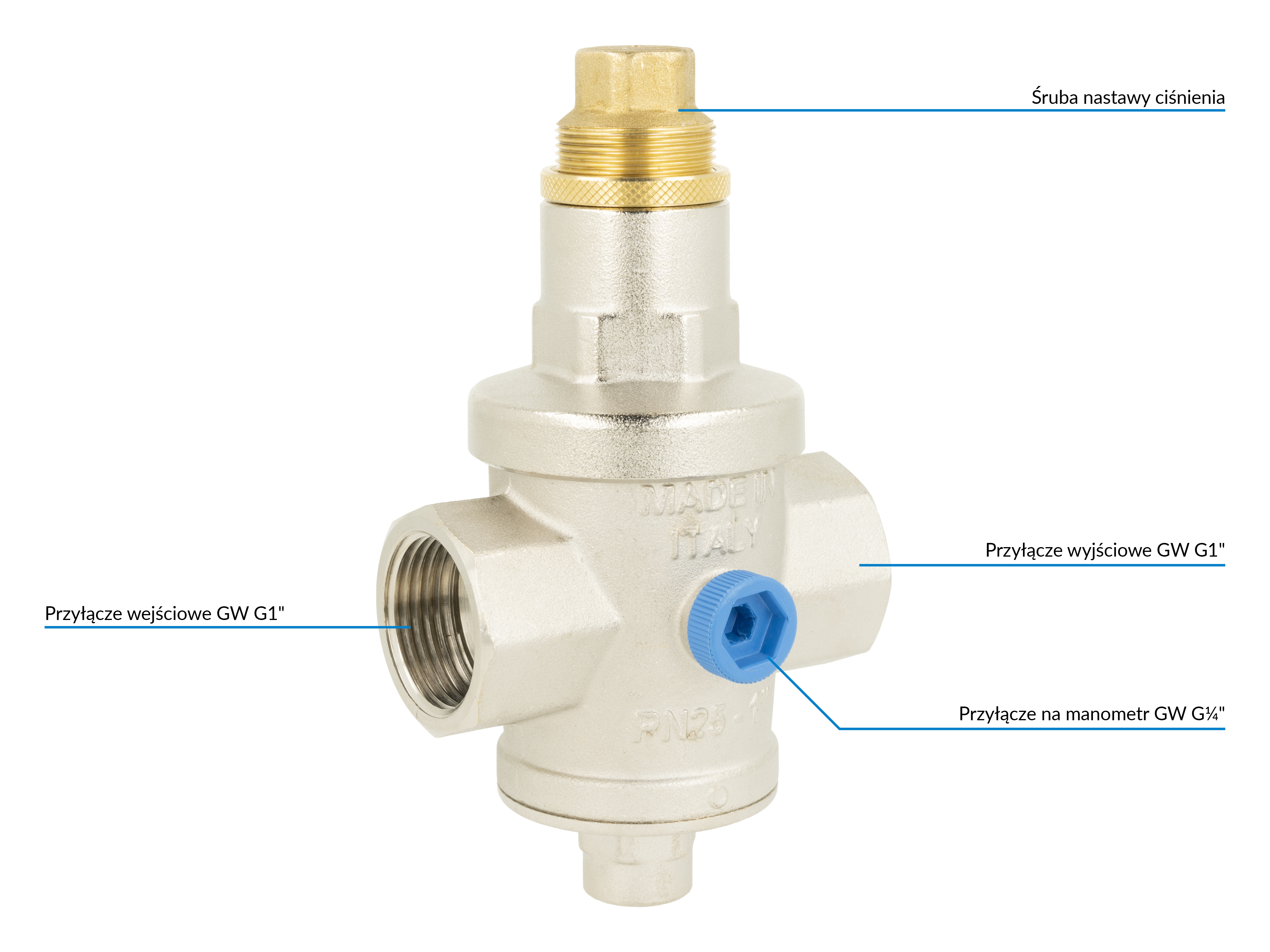 Obniża wysokie ciśnienie wodociągowe do wartości ustalonej.