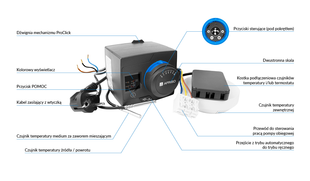 Regulator pogodowy ARC 345 ProClick, 3 czujniki, 230 V AC, z funkcją sterowania pompą