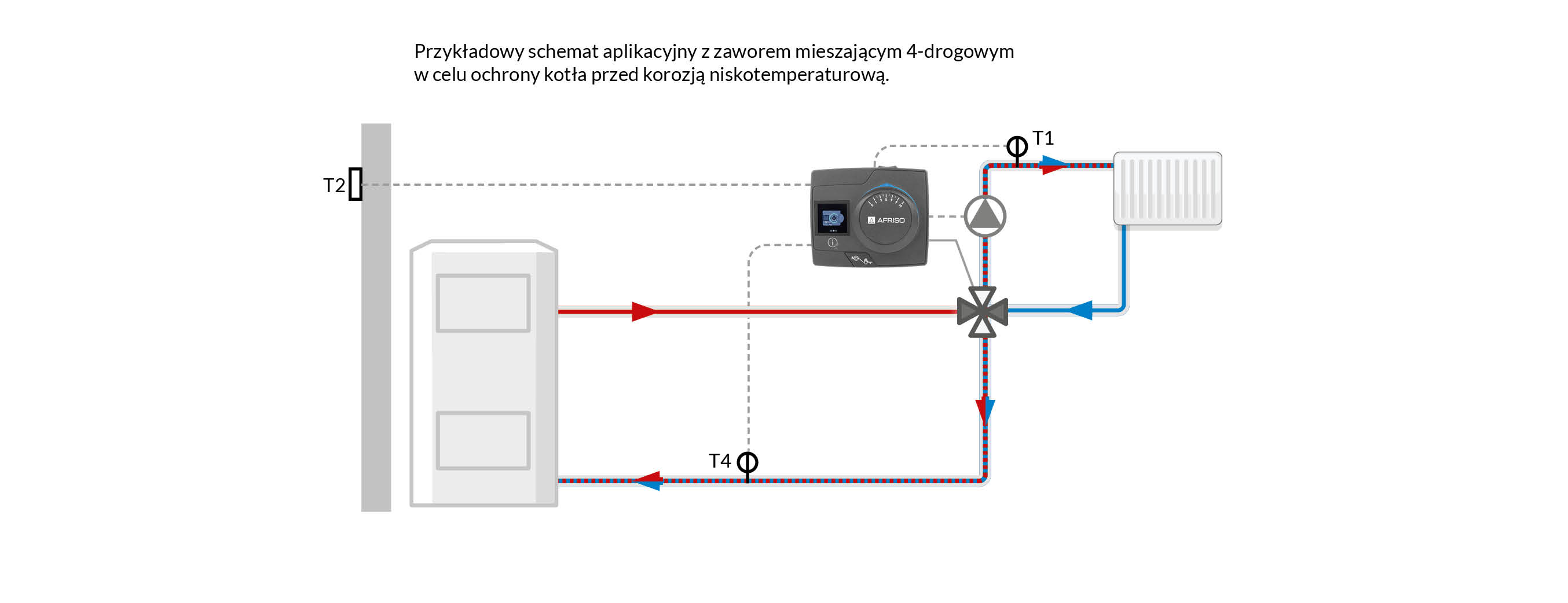 Reguluje temperaturę medium na podstawie temperatury zewnętrznej i ustawionej krzywej grzewczej.