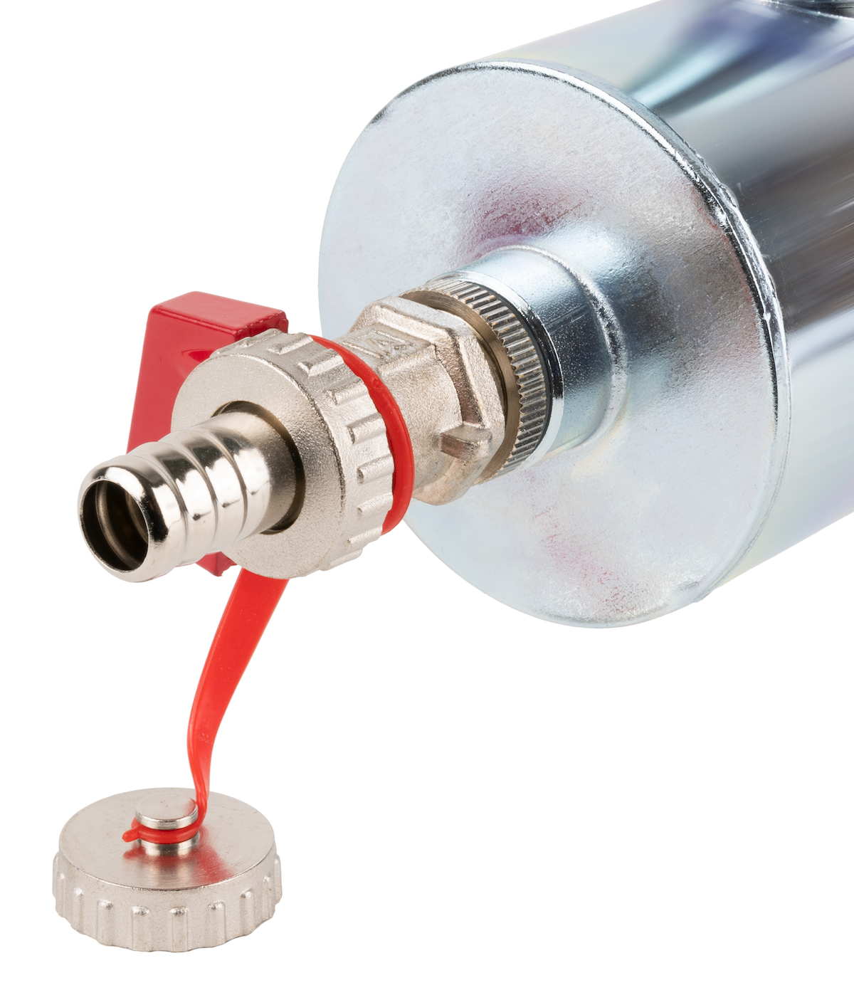 Zawór spustowy KFE umożliwia pozbycie się wytrąconych zanieczyszczeń.