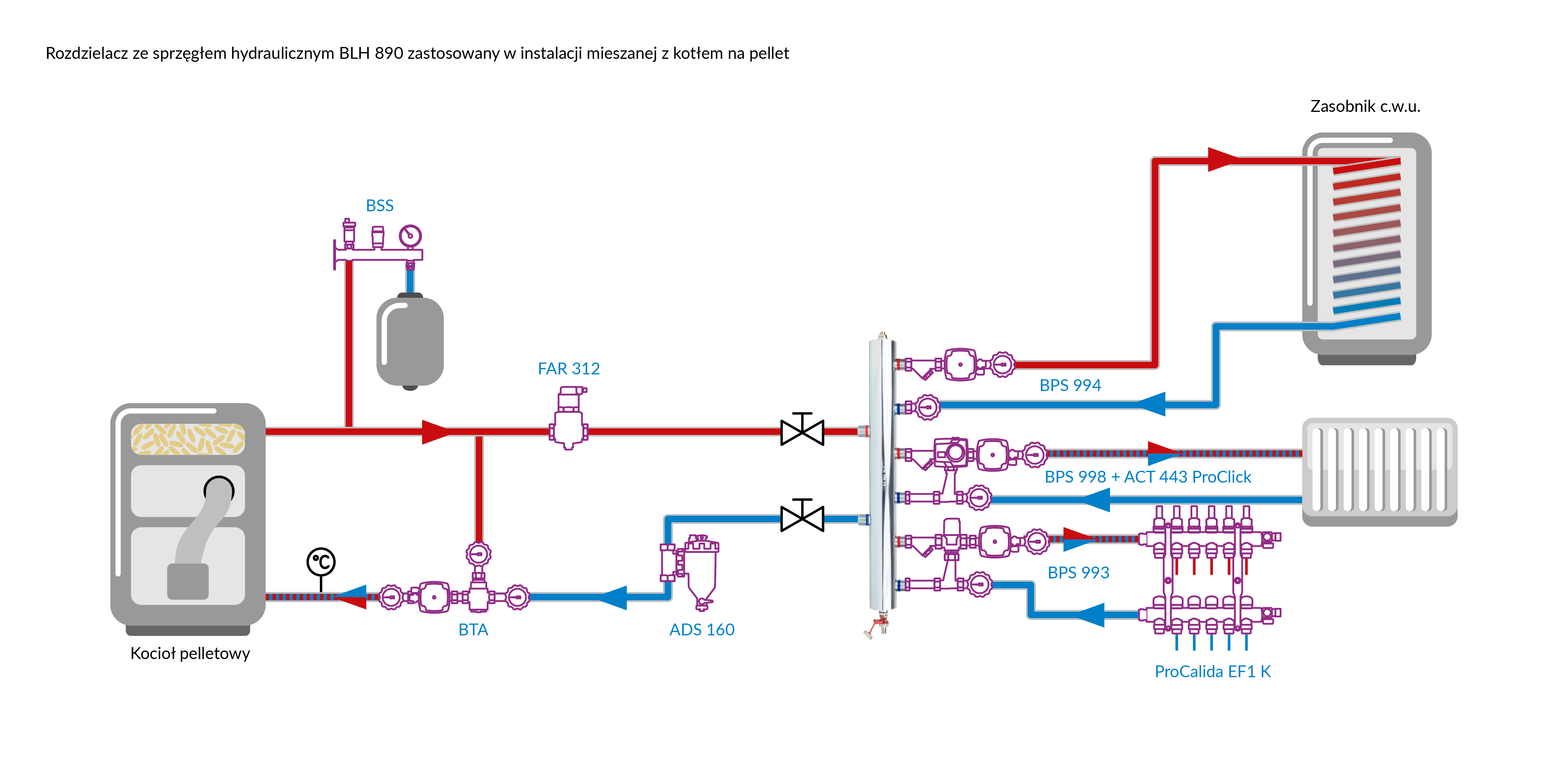 Zapewnia płynną pracę instalacji po wyłączeniu części odbiorników lub zmianie parametrów pracy pomp obiegowych.