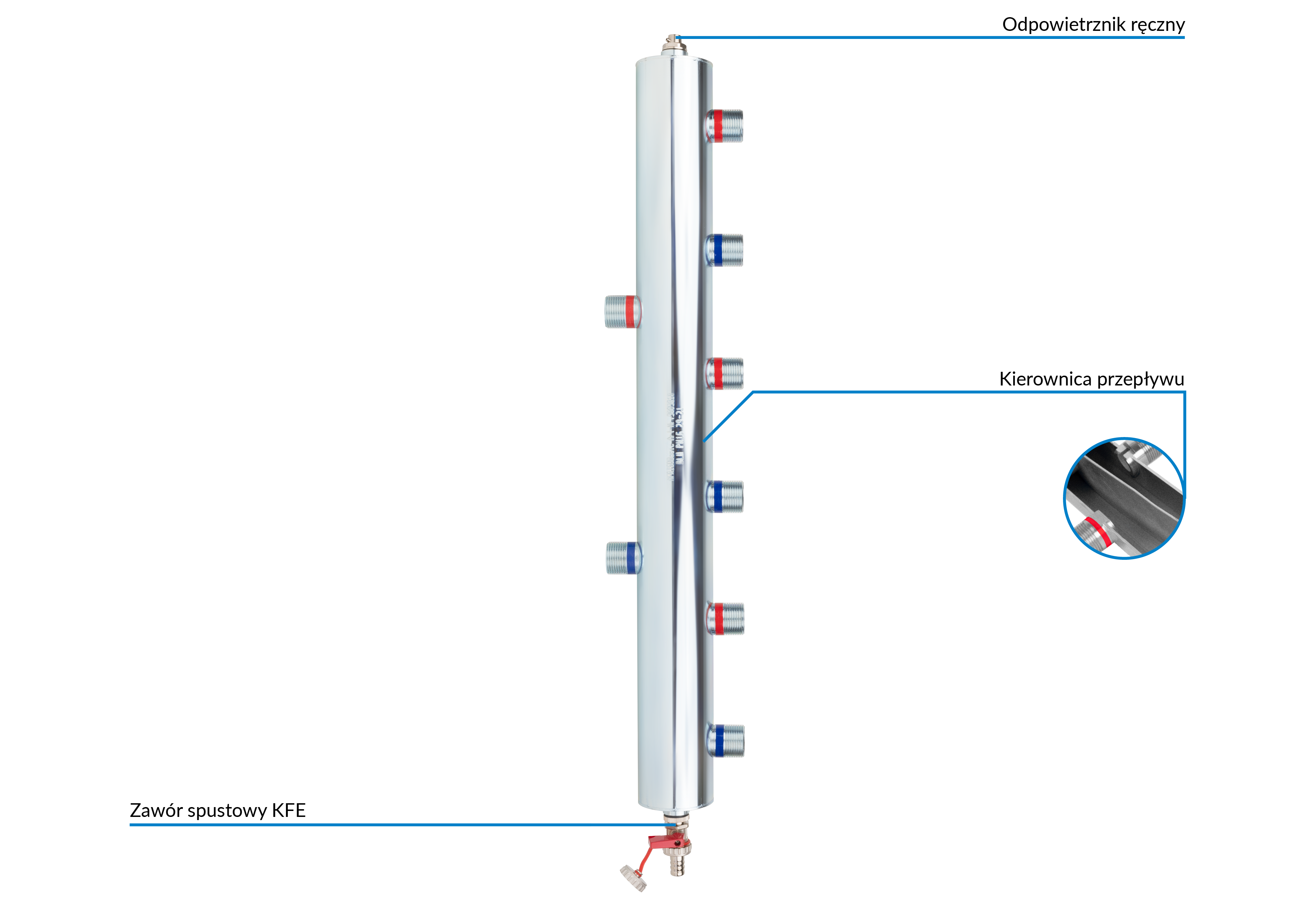 Odpowietrznik ręczny pozwala odpowietrzyć rozdzielacz.