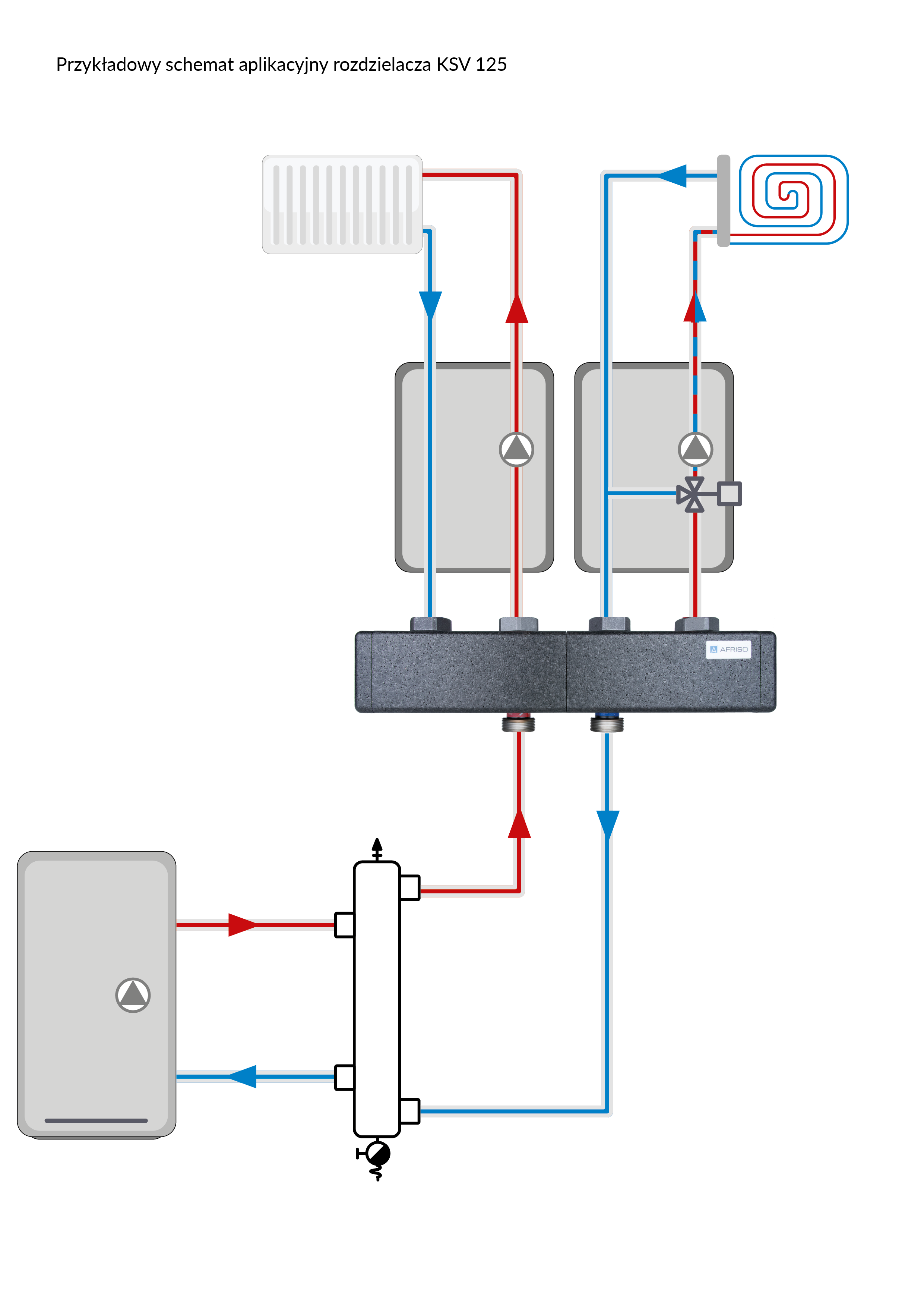 Stosowany w instalacjach grzewczych i chłodzących.Montowany na ścianie pomiędzy źródłem ciepła lub chłodu a grupami pompowymi.