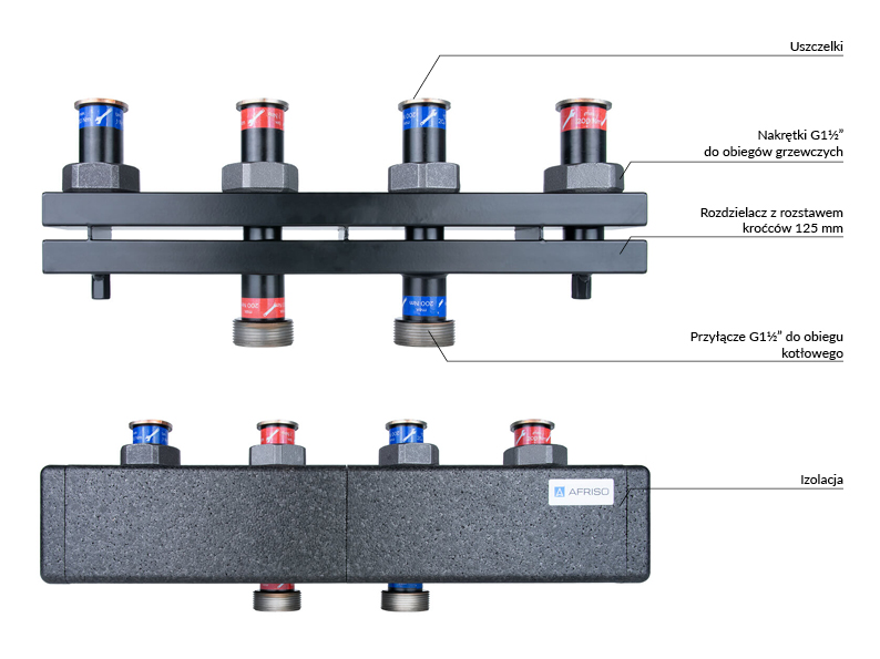 Rozdzielacz do instalacji c.o. AFRISO KSV 125-2 GZ 1 1/2'', 2-obieg. Nakrętka 1 1/2'', max. 70 kW