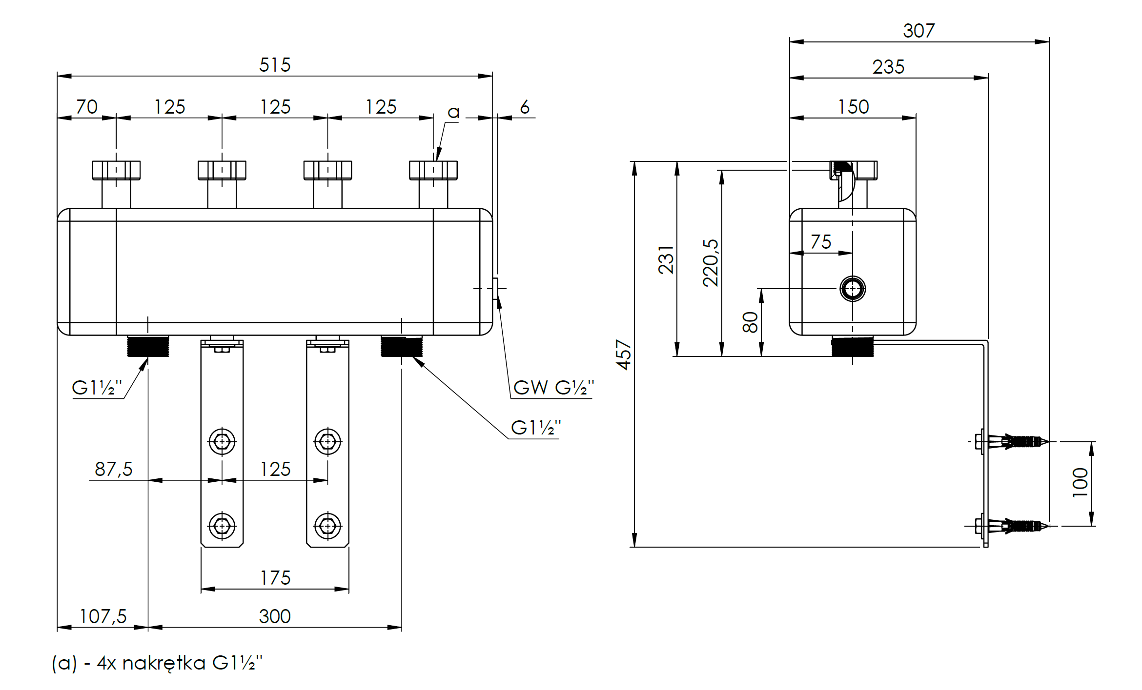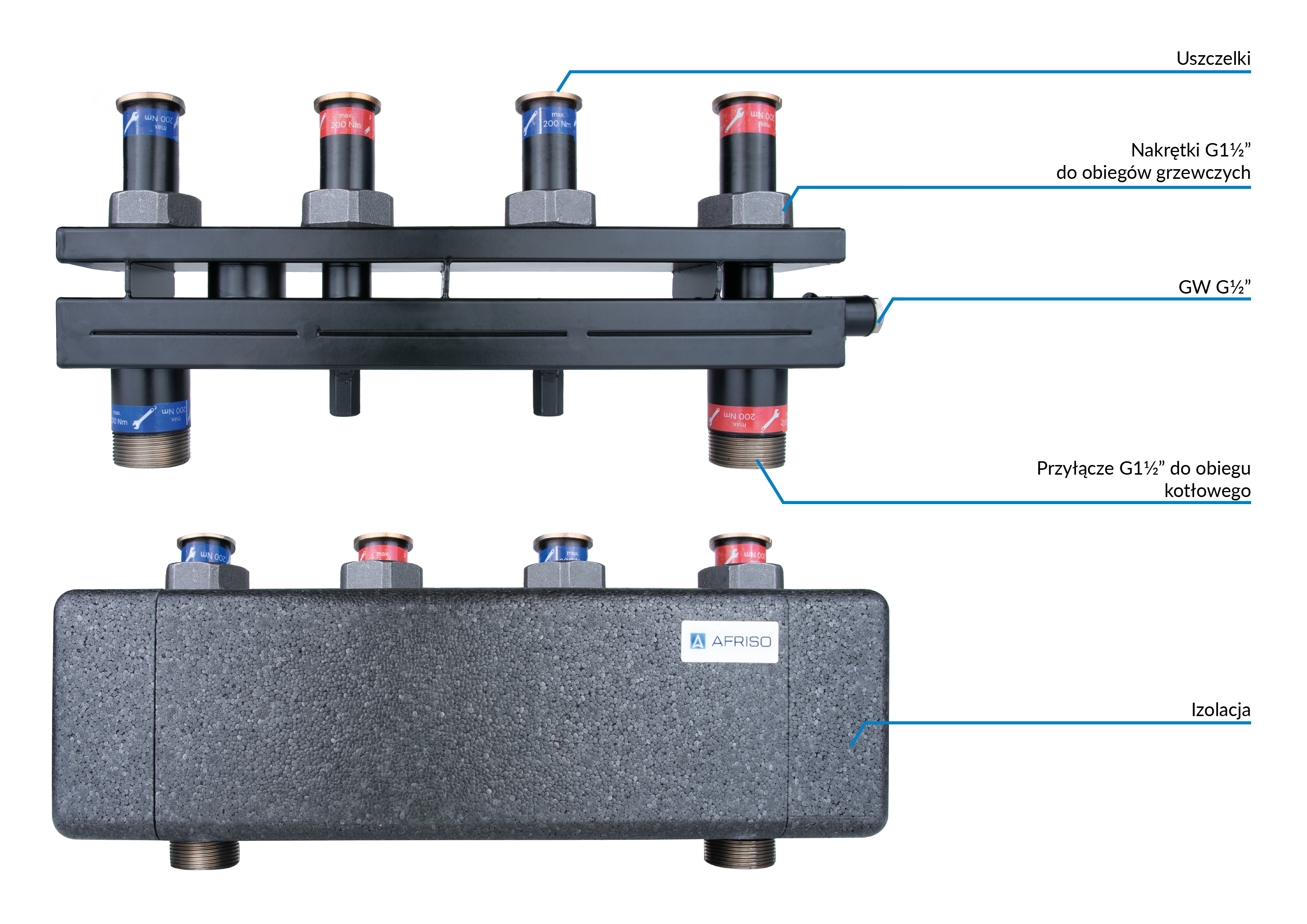 Rozdzielacz do instalacji c.o. AFRISO KSV 125-2 HW GZ 1 1/2'', 2-obieg. Nakrętka 1 1/2'', max. 70 kW