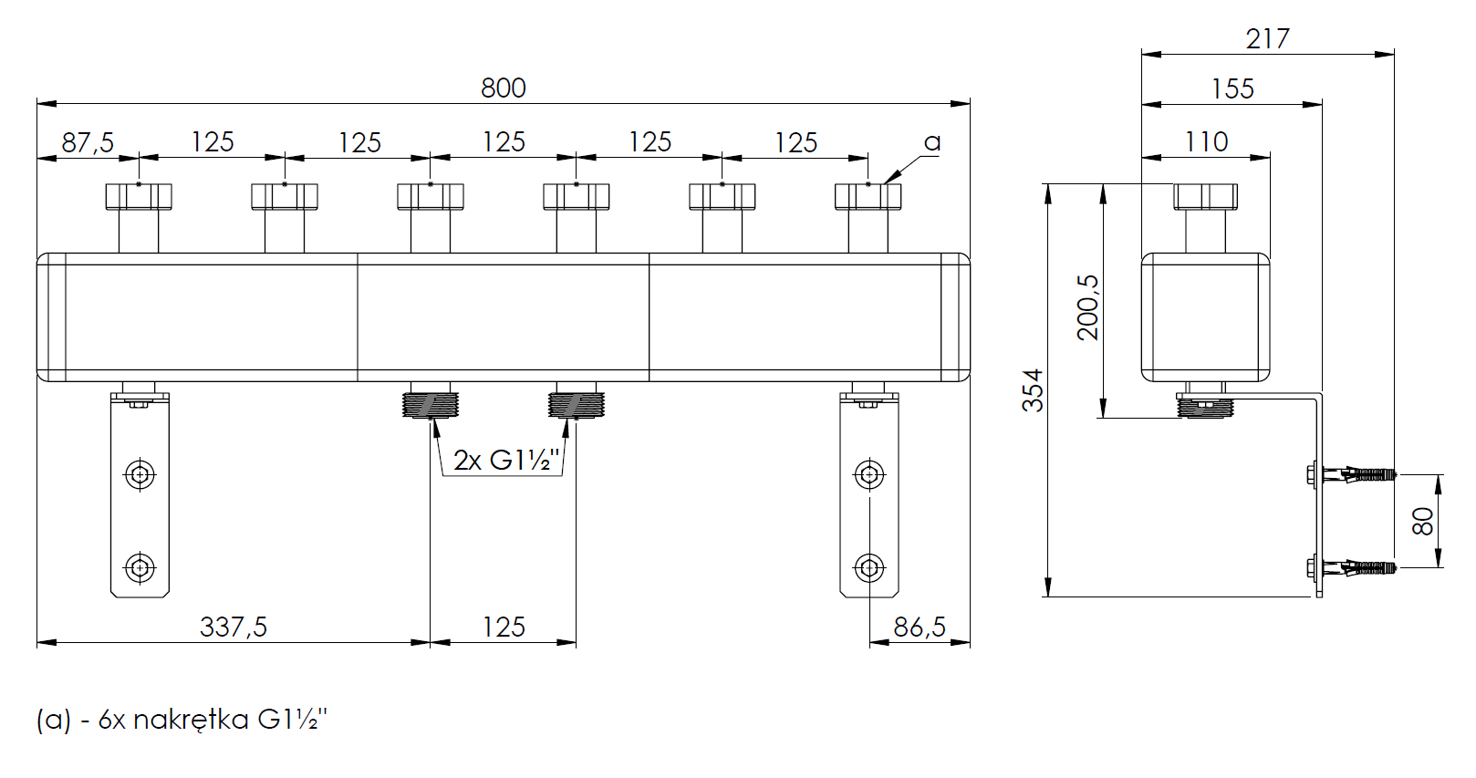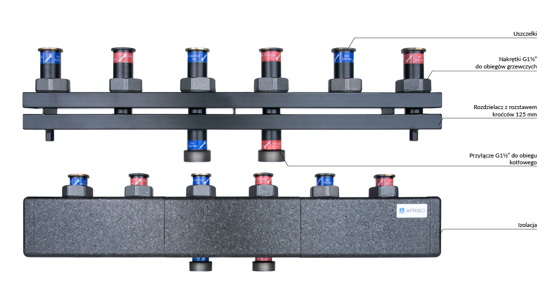 Rozdzielacz do instalacji c.o. AFRISO KSV 125-3 GZ 1 1/2'', 3-obieg. Nakrętka 1 1/2'', max. 70 kW