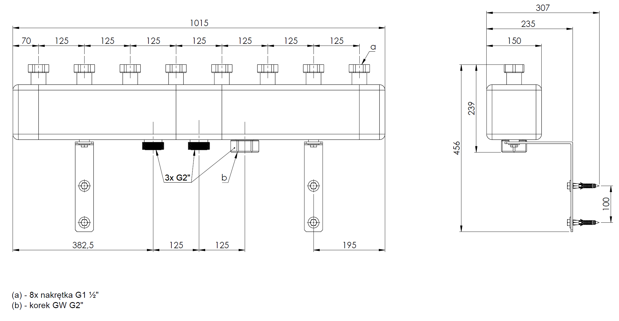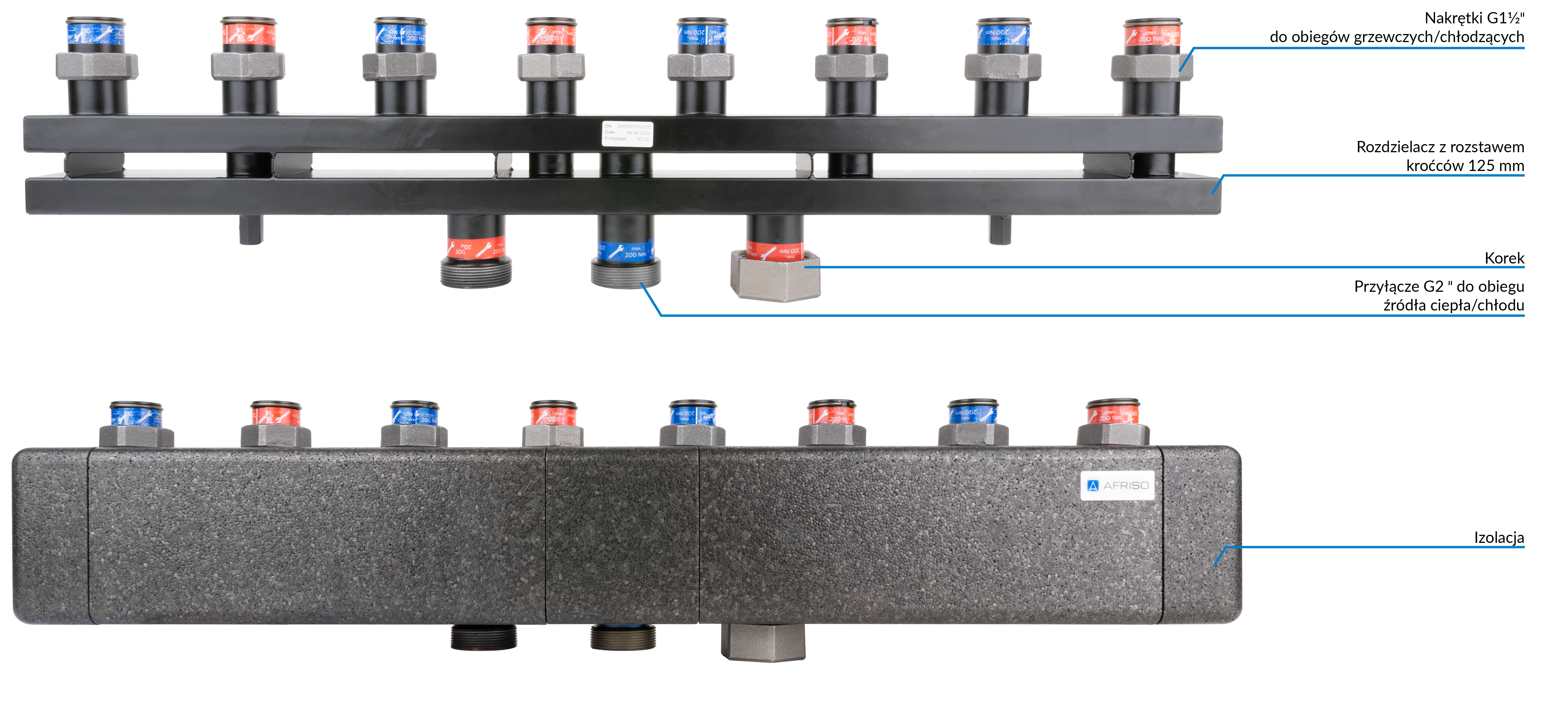 Rozdzielacz do instalacji c.o. AFRISO KSV 125-4 GZ 2'', 4-obieg. Nakrętka 1 1/2'', max. 160 kW
