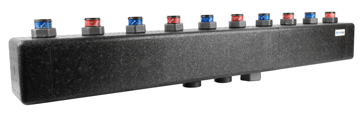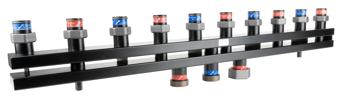 Przeznaczony do szybkiego i wygodnego podłączenia pięciu grup pompowych PrimoTherm do źródła ciepła/chłodu.