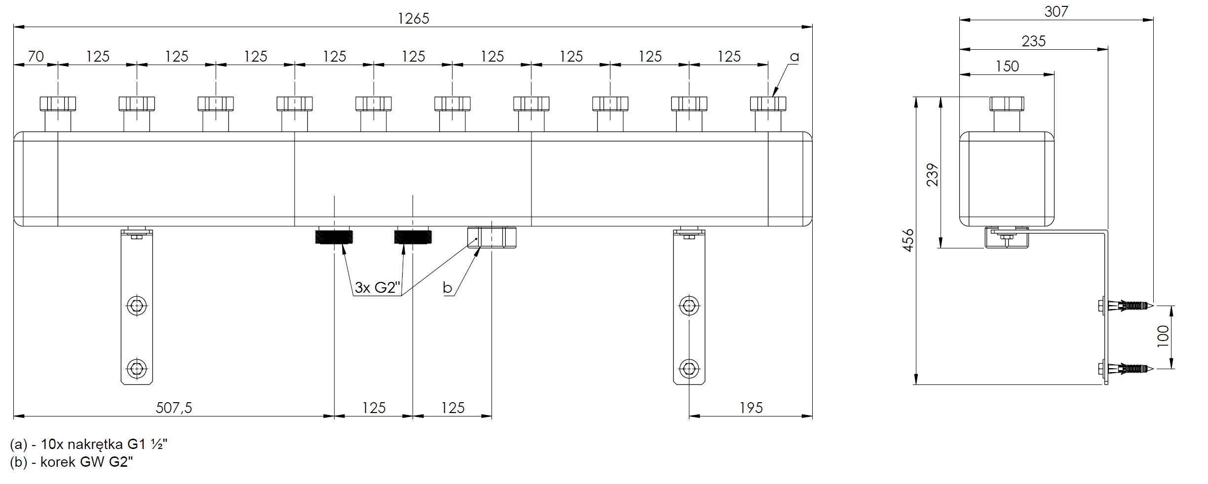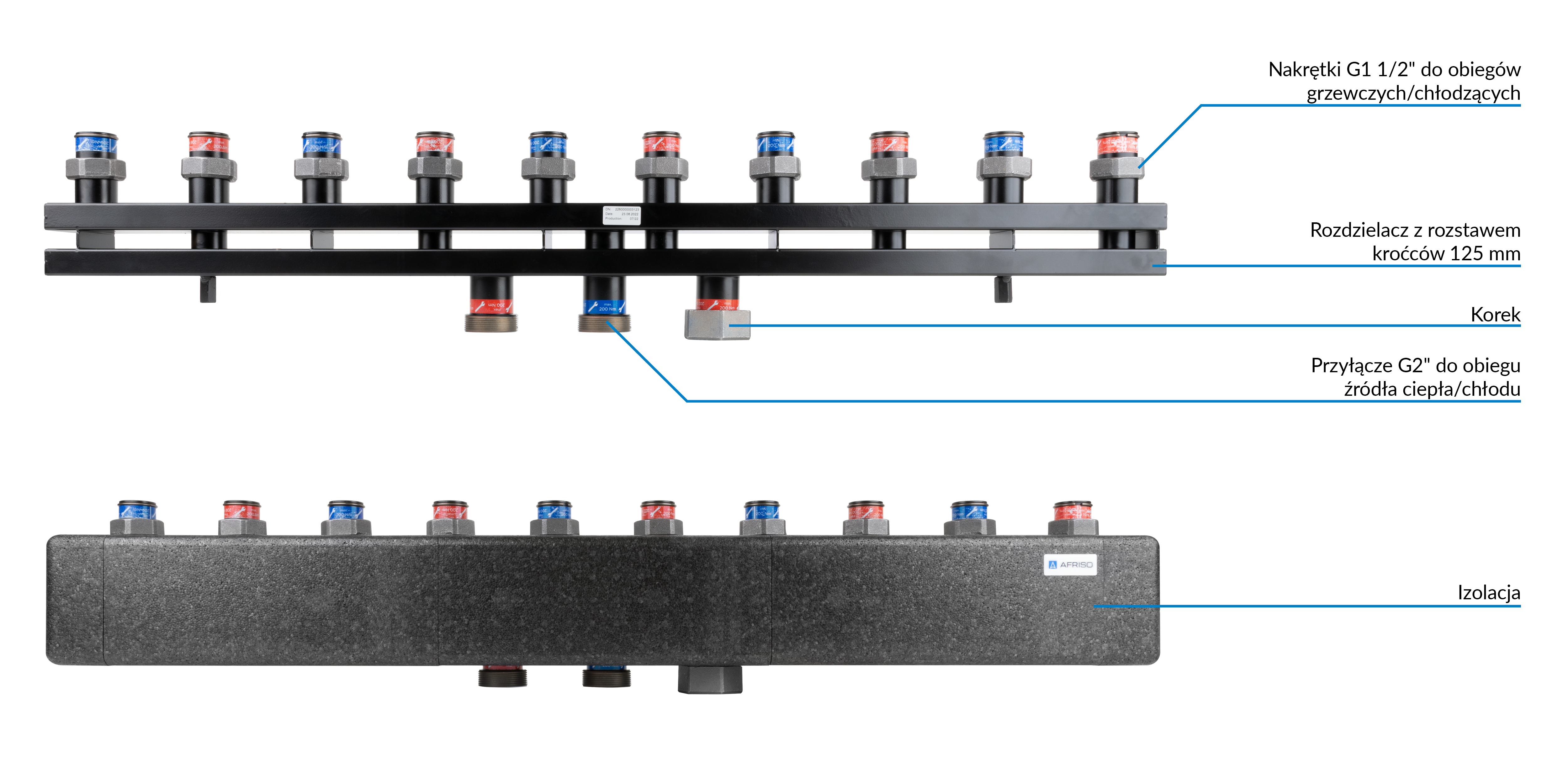 Rozdzielacz do instalacji c.o. AFRISO KSV 125-5 GZ 2'', 5-obieg. Nakrętka 1 1/2'', max. 160 kW
