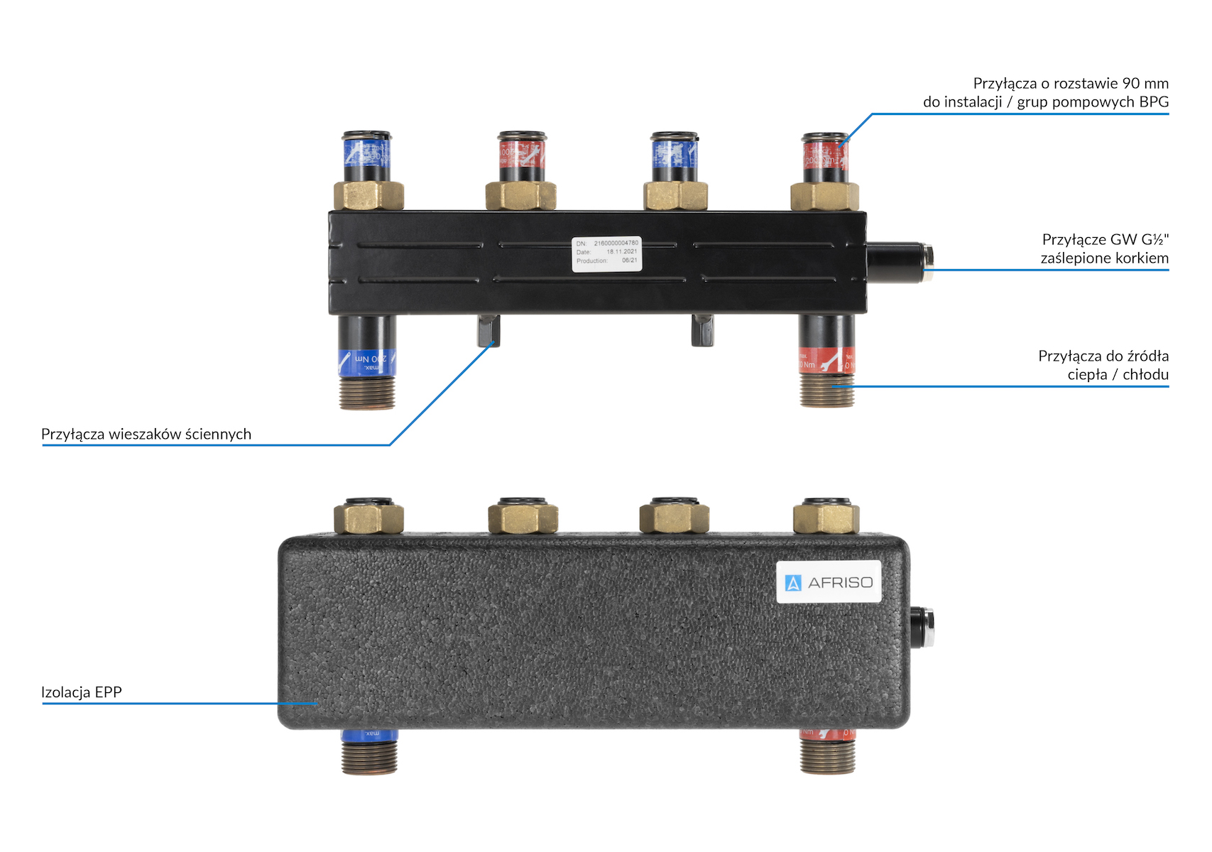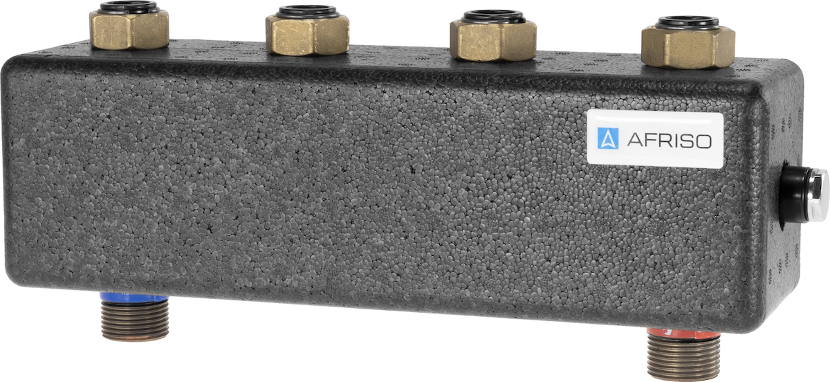 Rozdzielacz do instalacji c.o. AFRISO KSV 90-2 HW GZ 1'', 2-obieg. Nakrętka 1'', max. 50 kW