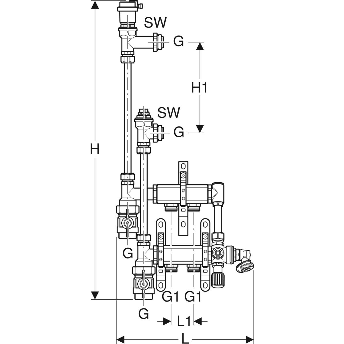 Rozdzielacz do instalacji c.o. GEBERIT Volex mosiądz (niklowany) GW 1'', 2-obieg. Eurokonus 3/4''
