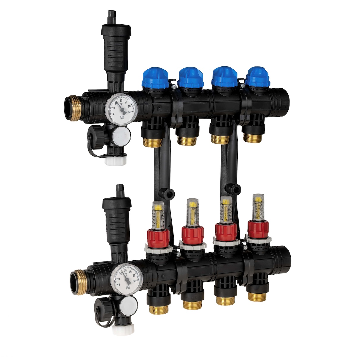 Rozdzielacz do ogrzewania podłogowego AFRISO ProCalida EF1 4-obieg. poliamid GZ 1'' x euroconus 3/4''