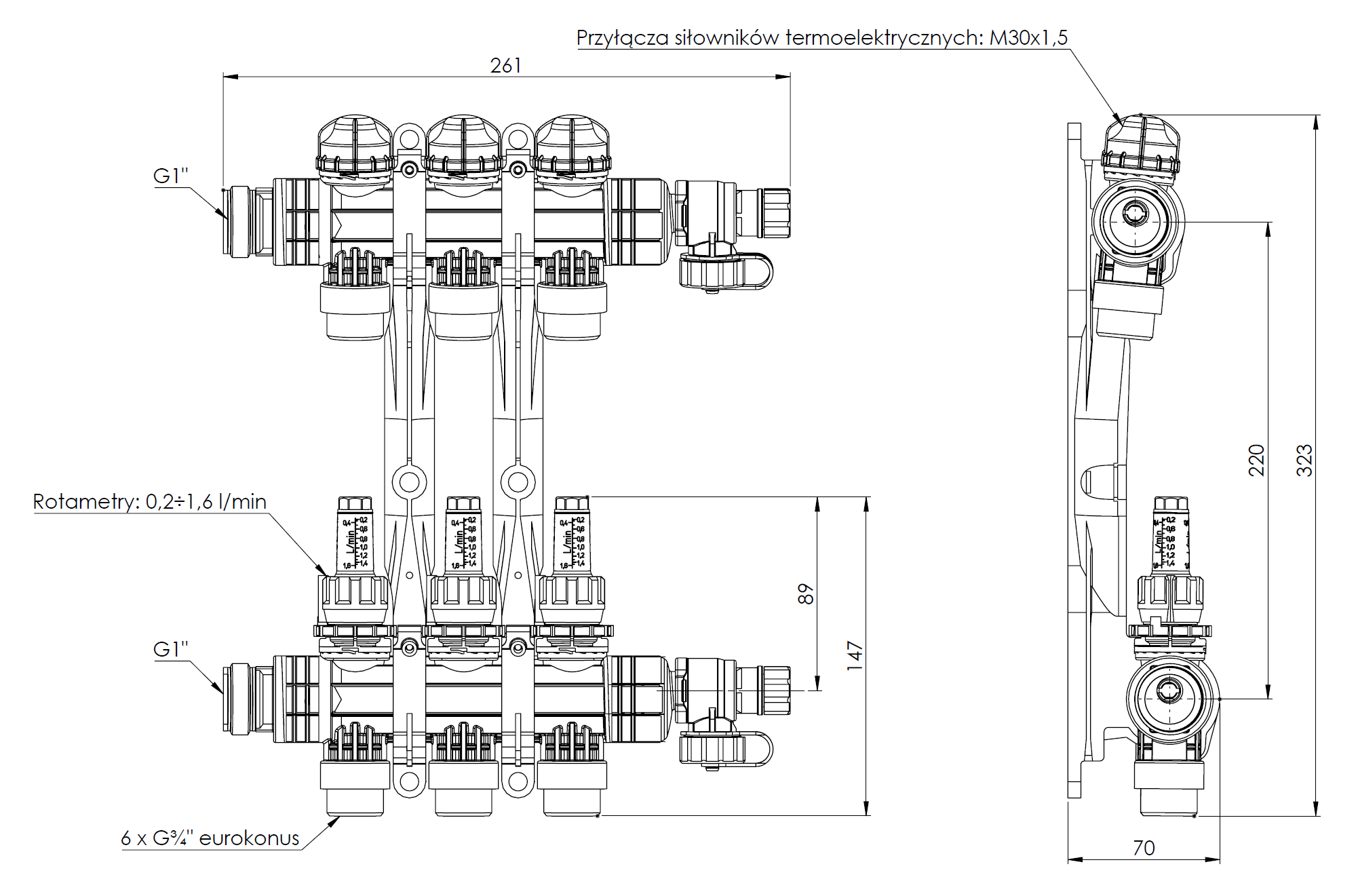 Stosowany w instalacjach płaszczyznowych grzewczych lub chłodzących.Montowany w szafce umieszczonej w ścianie / na ścianie budynku lub pod stropem w instalacjach sufitowych.