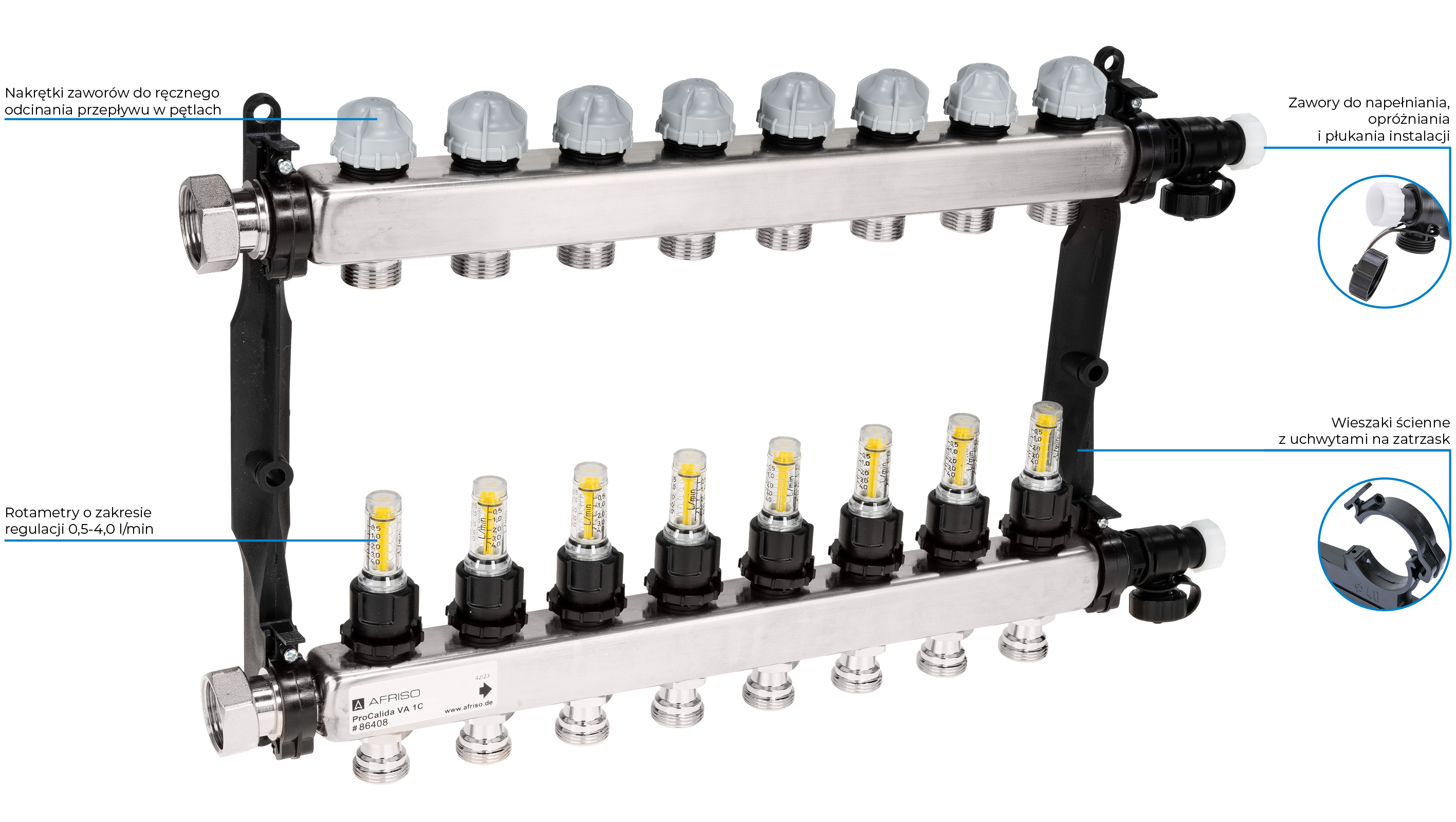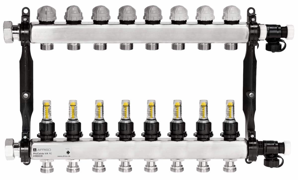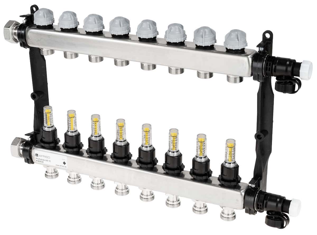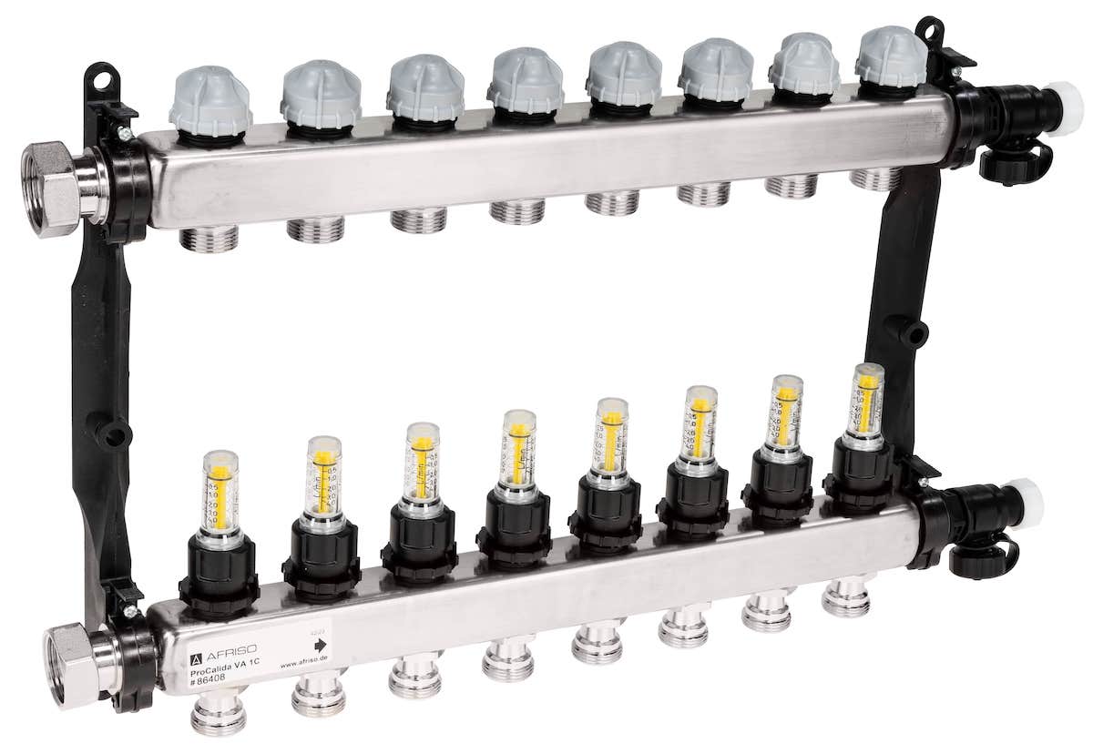 Rozdzielacz do ogrzewania podłogowego AFRISO ProCalida VA 1C 8-obieg. stal nierdzewna GZ 1'' x euroconus 3/4''