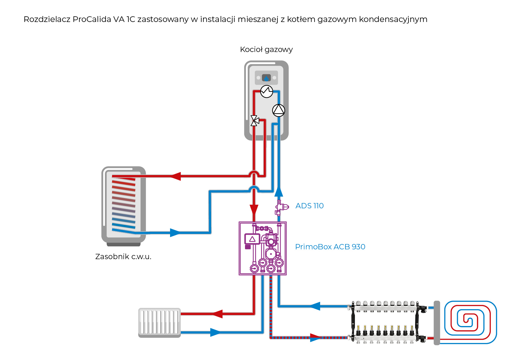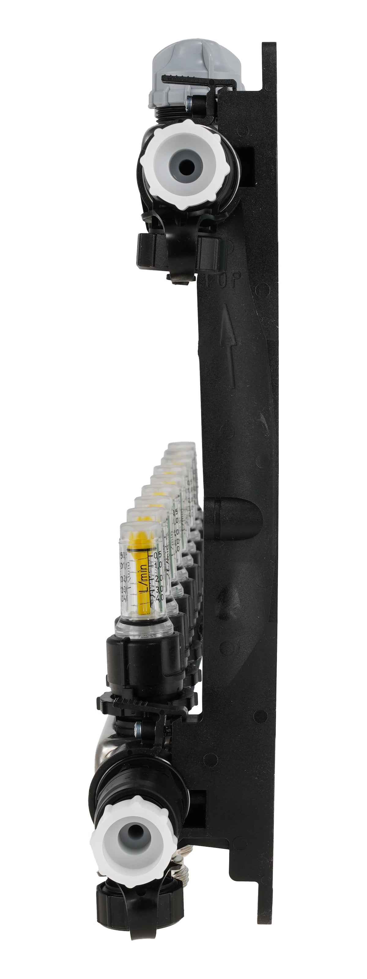 Rozprowadza ciepło/chłód ze źródła na poszczególne pętle instalacji płaszczyznowej.