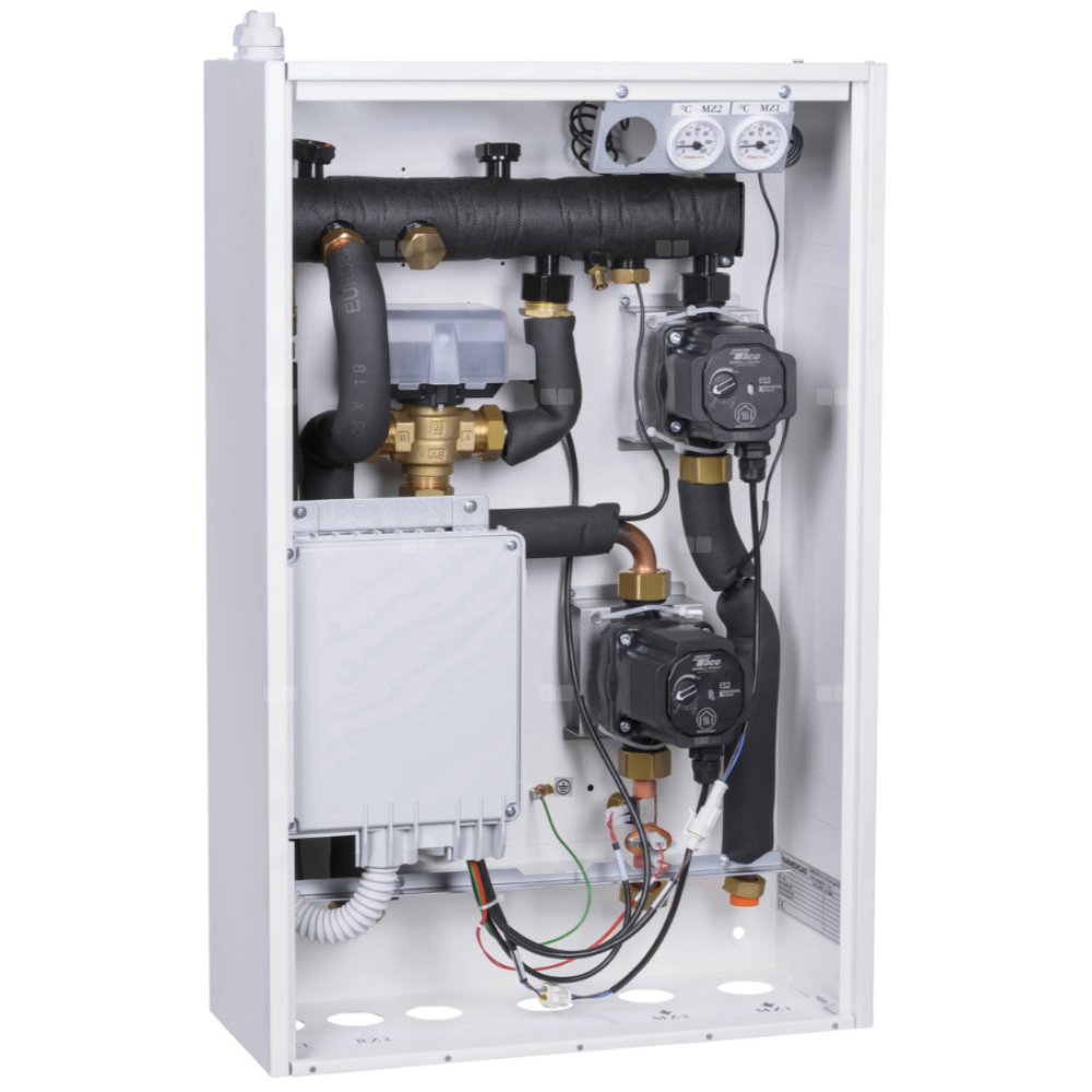 Hydrauliczny rozdzielacz strefowy do obsługi dwóch niezależnych stref grzewczych - jednej wysokiej temperatury (grzejniki) i jednej niskiej temperatury (ogrzewanie podłogowe). Fabrycznie wyposażony w sprzęgło hydrauliczne do 35 kW, dwie energooszczędne pompy obiegowe sterowane elektronicznie, o wysokiej wydajności, zgodne z dyrektywą ErP oraz zawór 3-drożny z siłownikiem i automatykę sterującą.