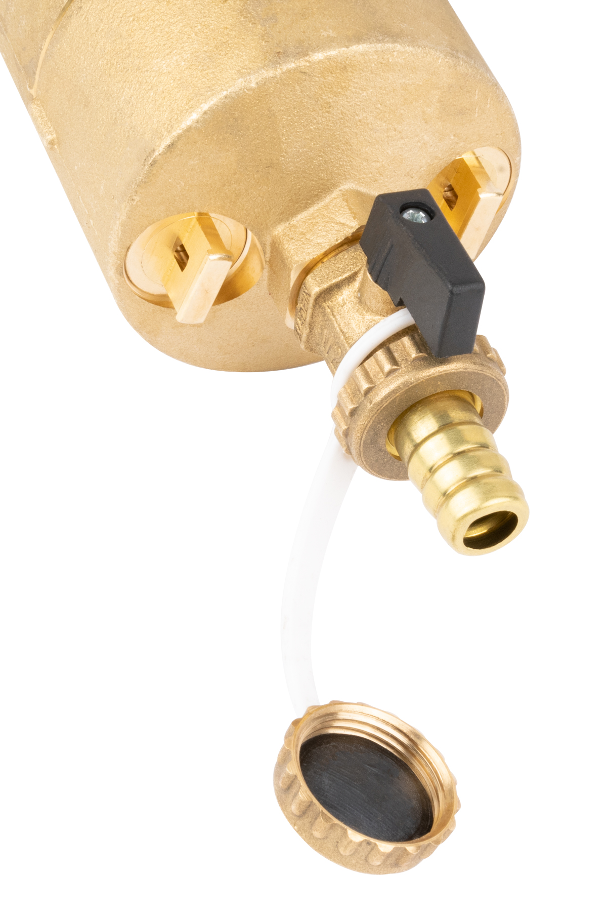 Zawór spustowy usuwa zanieczyszczenia wytrącone z medium.