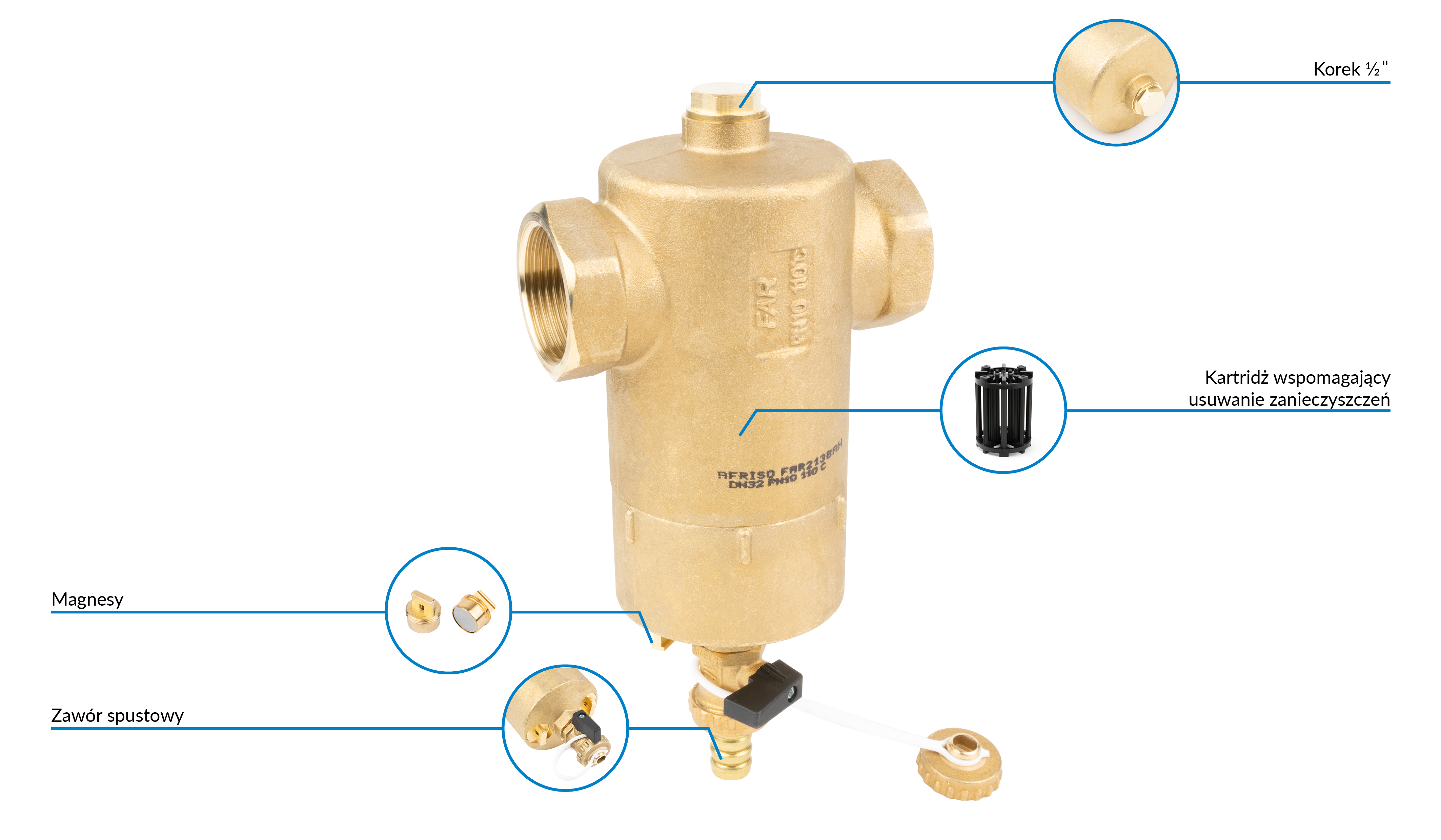 Stosowany w instalacjach grzewczych i chłodzących.Montowany na powrocie z instalacji przed źródłem.