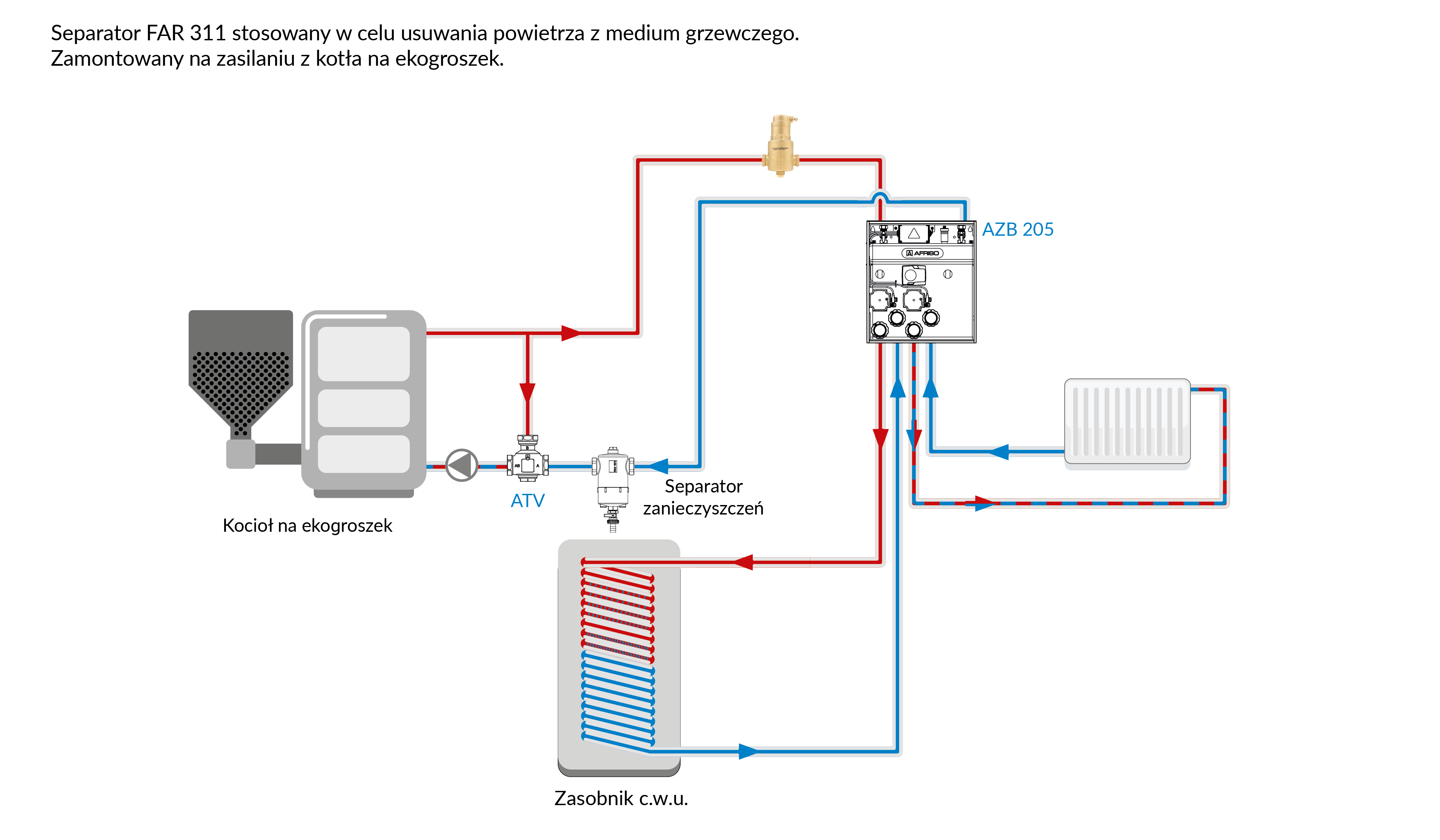 Stosowany w instalacjach grzewczych i chłodzących.W instalacjach grzewczych montowany na zasilaniu, w chłodzących na powrocie.