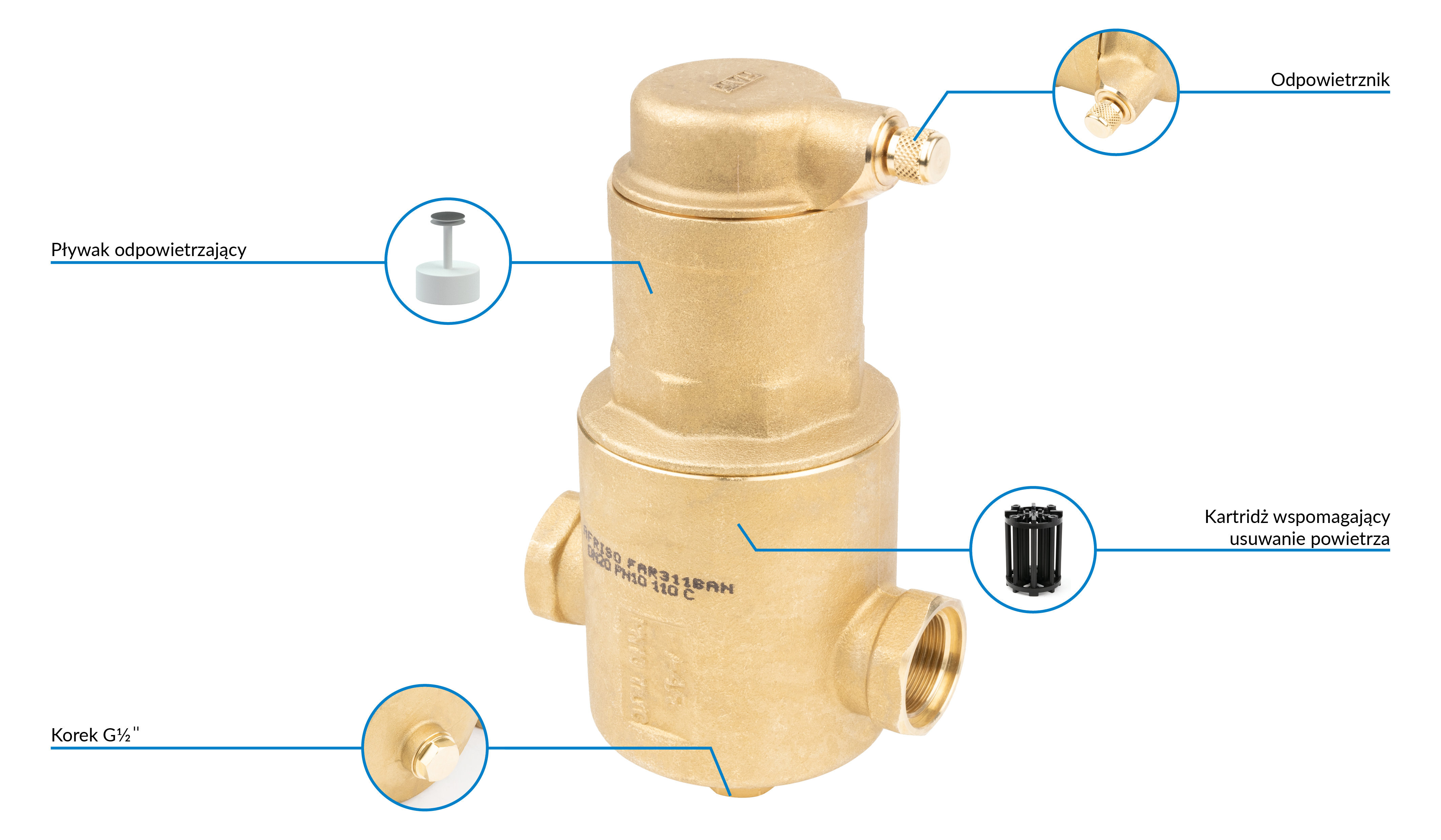 Separator mikropęcherzy AFRISO FAR 311, do C.O., do klimatyzacji, 10 bar / 110'C, 3/4'' (GW)Instalacje i źródła ciepła