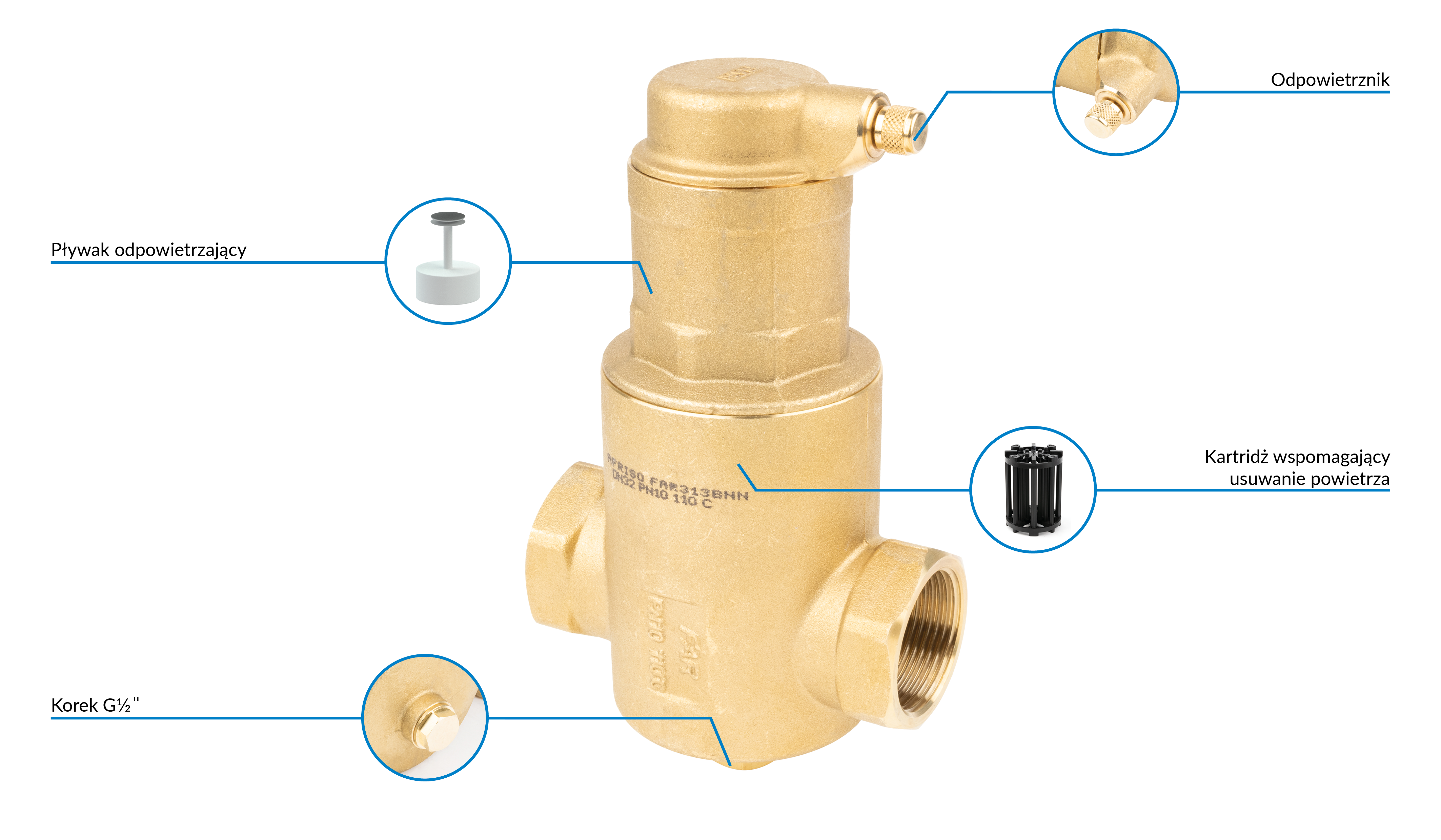 Separator mikropęcherzy AFRISO FAR 313, do C.O., do klimatyzacji, 10 bar / 110'C, 1 1/4'' (GW)Instalacje i źródła ciepła