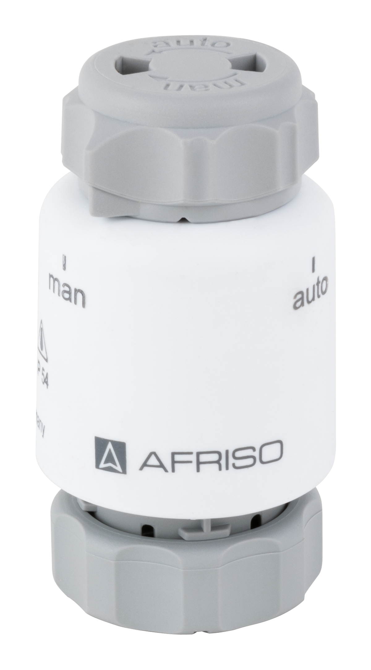 Siłownik termoelektryczny TSA-02 FO, nakrętka M30 x 1,5 mm, 230 V AC, NC, funkcja sterowania ręcznego
