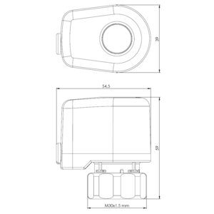 Siłownik termoelektryczny TSA-03, nakrętka M30 x 1,5 mm, 230 V AC z wył. pomocniczym, NC