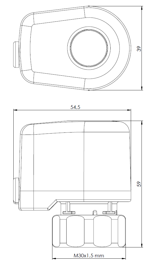 Siłownik termoelektryczny TSA-03, nakrętka M30 x 1,5 mm, 230 V AC z wył. pomocniczym, NC