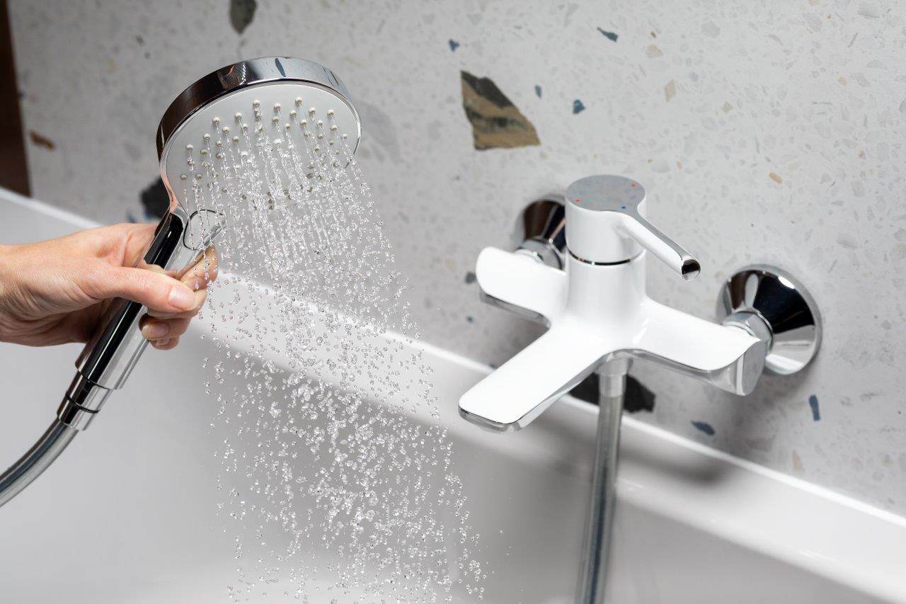 Rączka natryskowa angelit okrągła, 3-Funkcyjna z przyciskiem, chrom+Biały