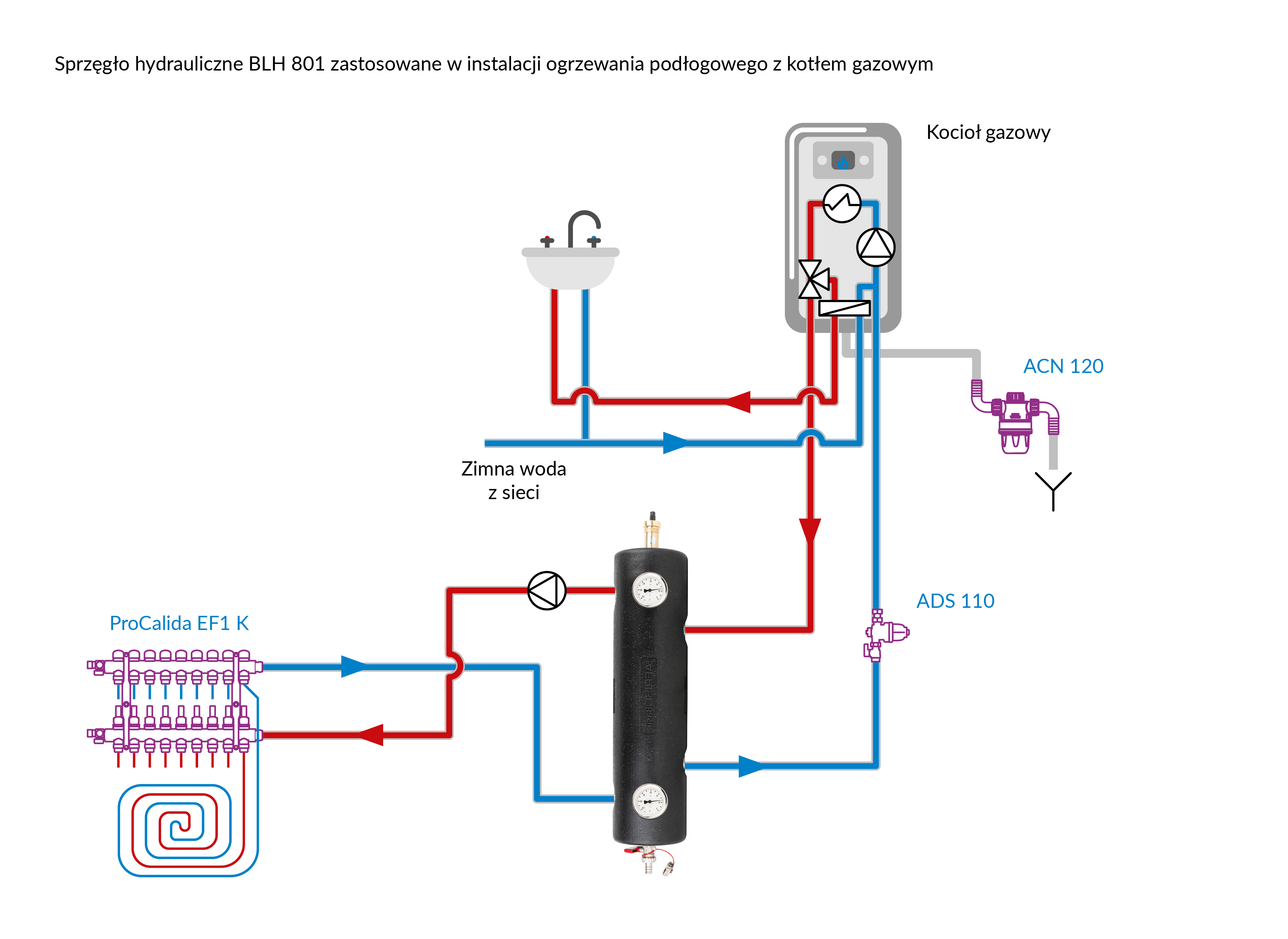 Rozdziela hydraulicznie obieg źródła od obiegów po stronie instalacji.